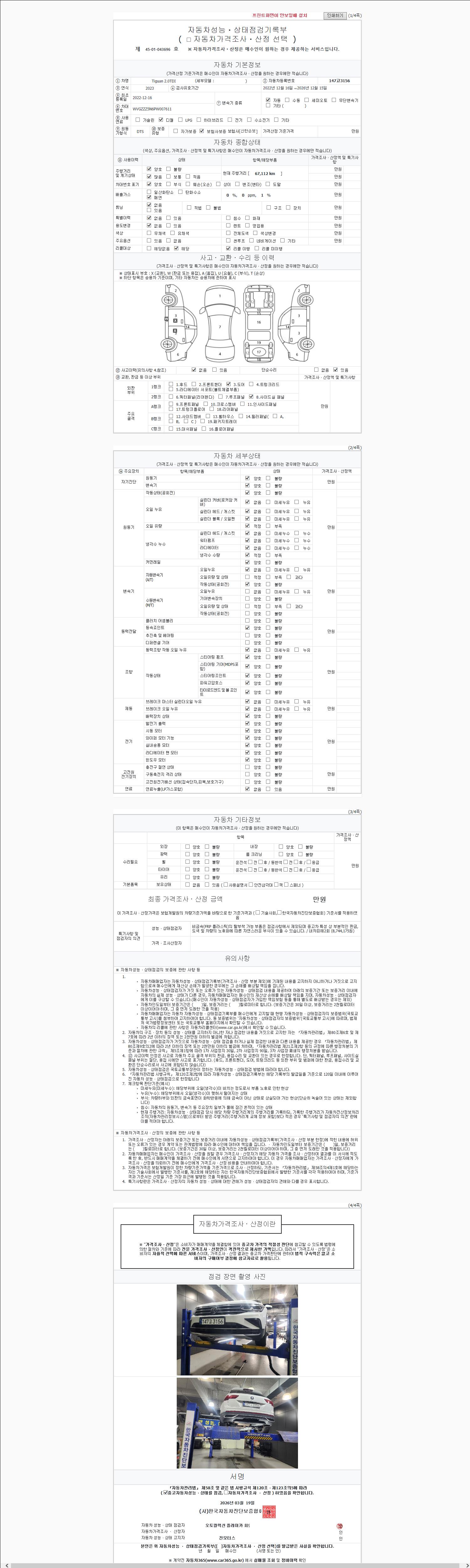 - 2. 차량 등록증이나 성능점검지 등을 상담자에게 요청및 확인하시고 사전에 미리 점검 하시기를 권유드립니다.