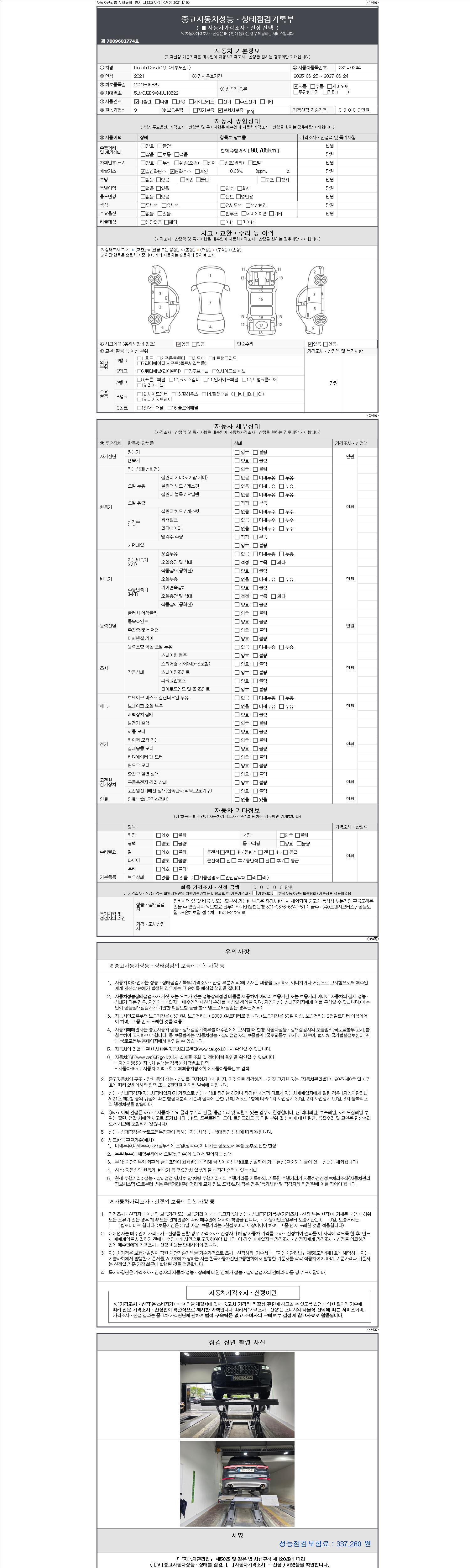 | 주행거리 | 98,705 km | 차량번호 | 280나9344 | 사고유무 | 성능기록부 참조 | 제시번호 | 제 2147483647 호 |