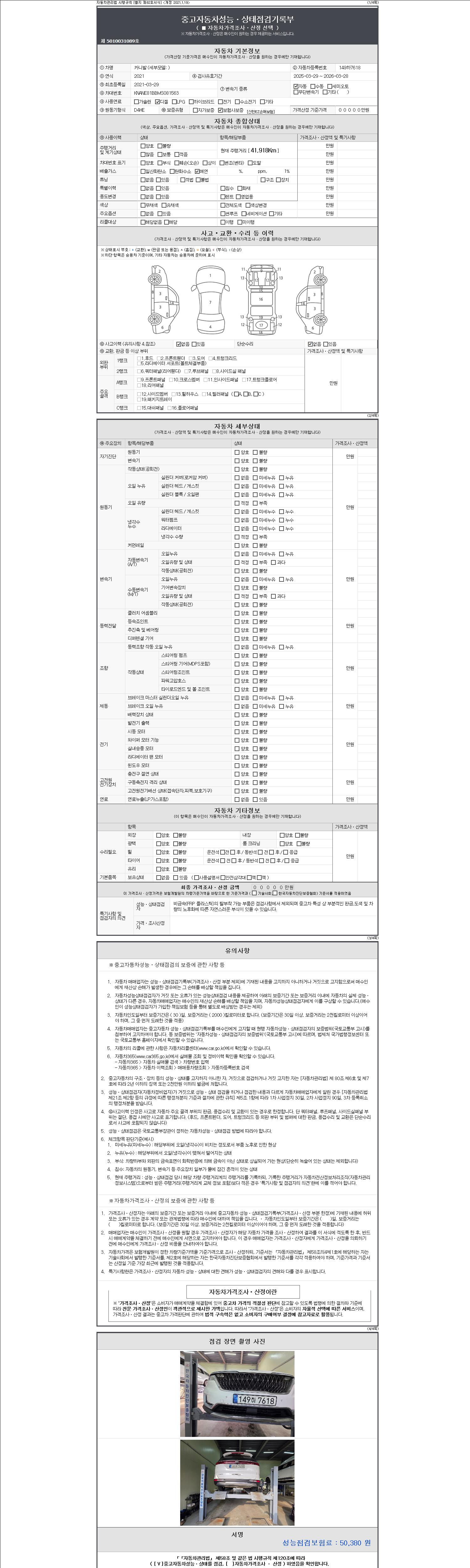 - 2. 차량 등록증이나 성능점검지 등을 상담자에게 요청및 확인하시고 사전에 미리 점검 하시기를 권유드립니다.