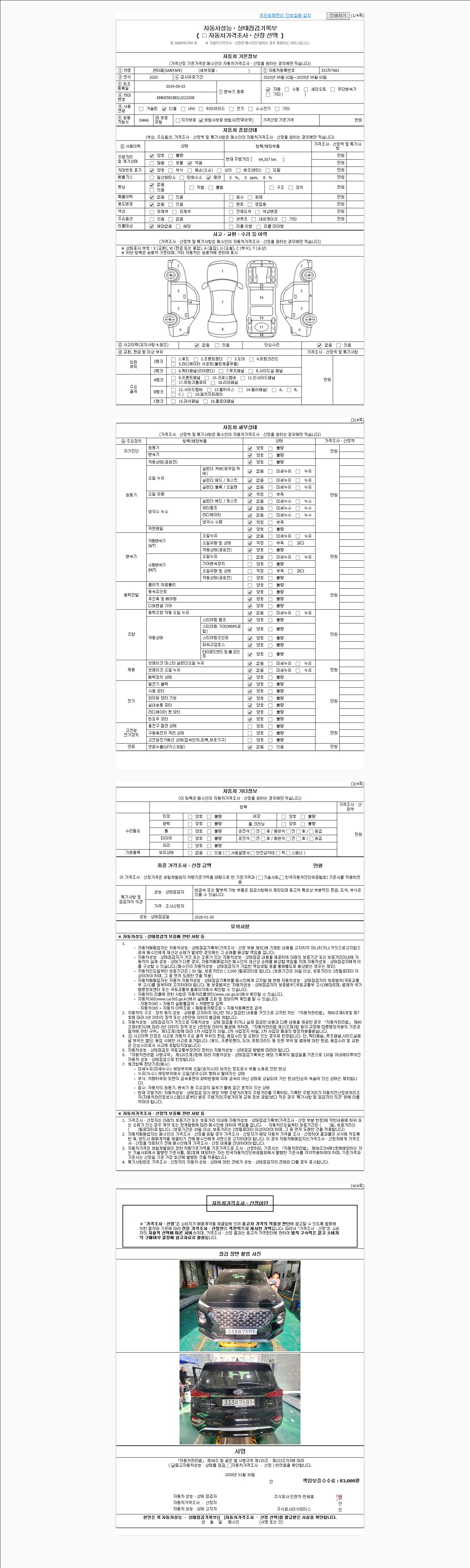 - 2. 차량 등록증이나 성능점검지 등을 상담자에게 요청및 확인하시고 사전에 미리 점검 하시기를 권유드립니다.