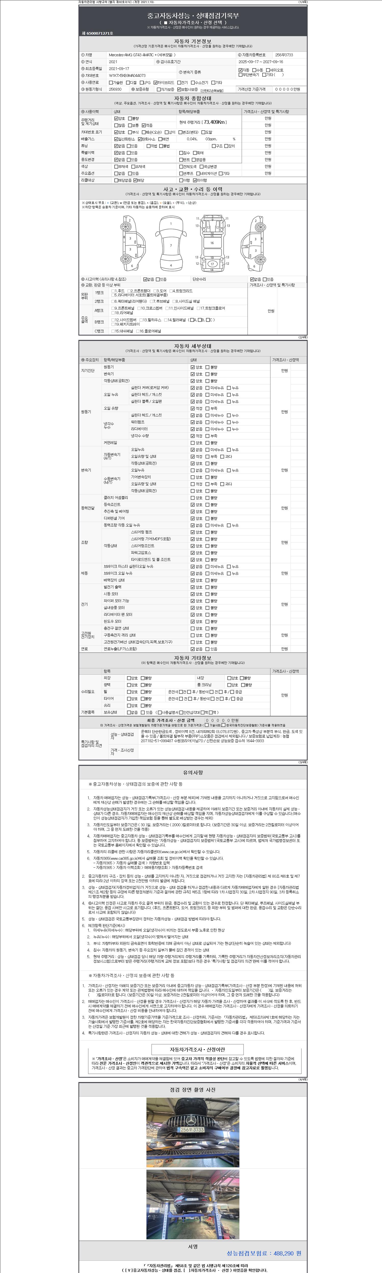 | 주행거리 | 73,409 km | 차량번호 | 256무3733 | 사고유무 | 성능기록부 참조 | 제시번호 | 제 2147483647 호 |