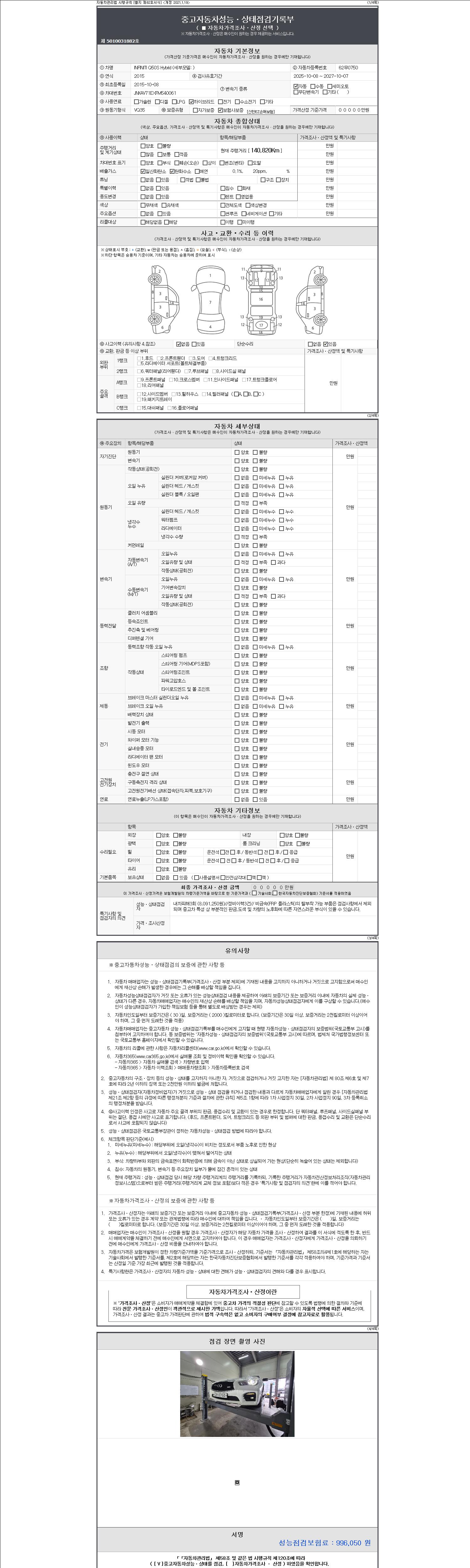 - 사고유무 : 성능기록부 참조