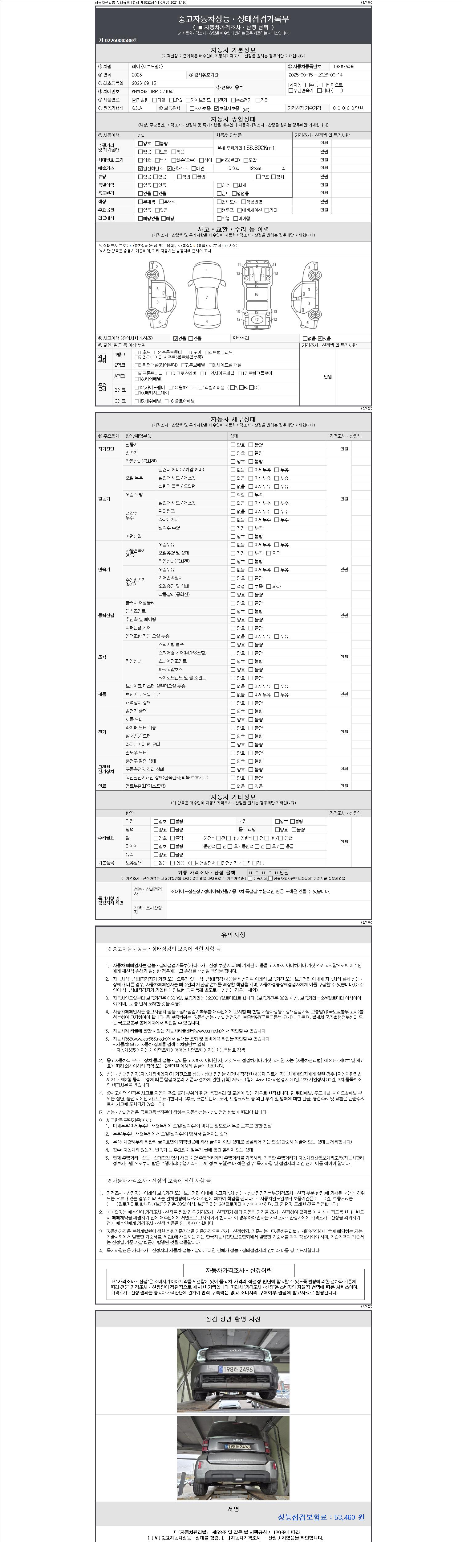 - 2. 차량 등록증이나 성능점검지 등을 상담자에게 요청및 확인하시고 사전에 미리 점검 하시기를 권유드립니다.