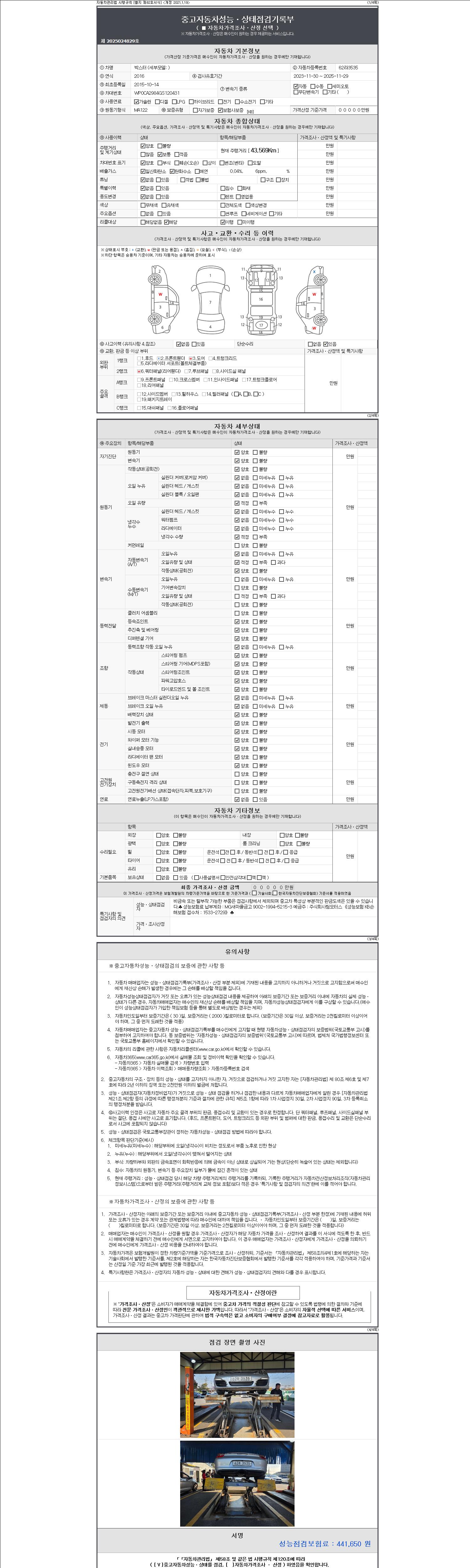 - 사고유무 : 성능기록부 참조