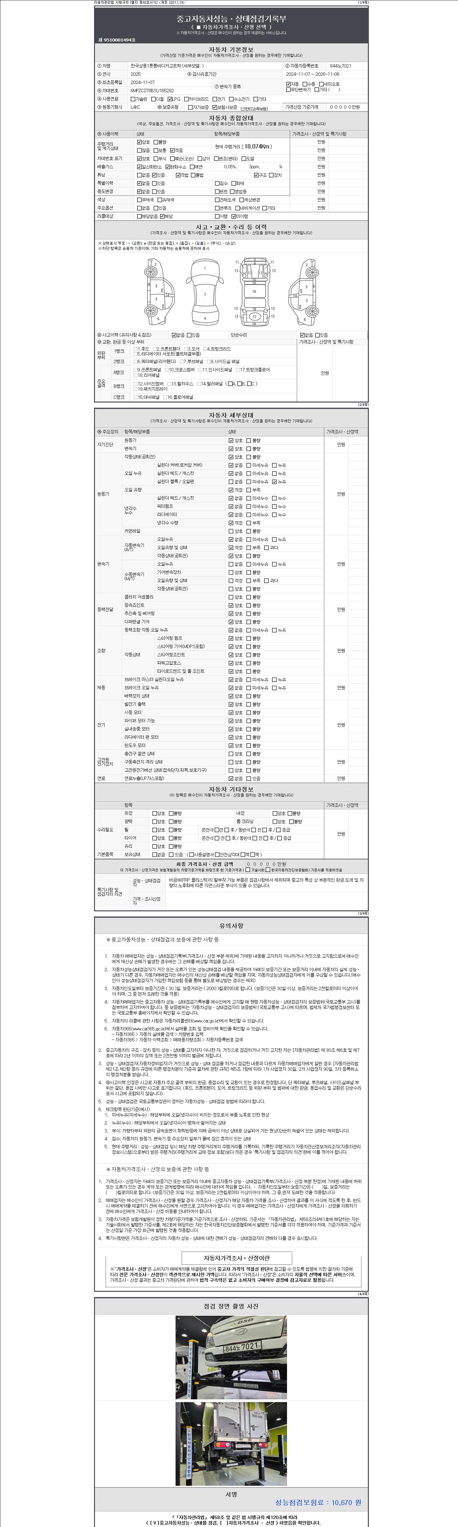 | 주행거리 | 18,000 km | 차량번호 | 844노7021 | 사고유무 | 성능기록부 참조 | 제시번호 | 제 2147483647 호 |