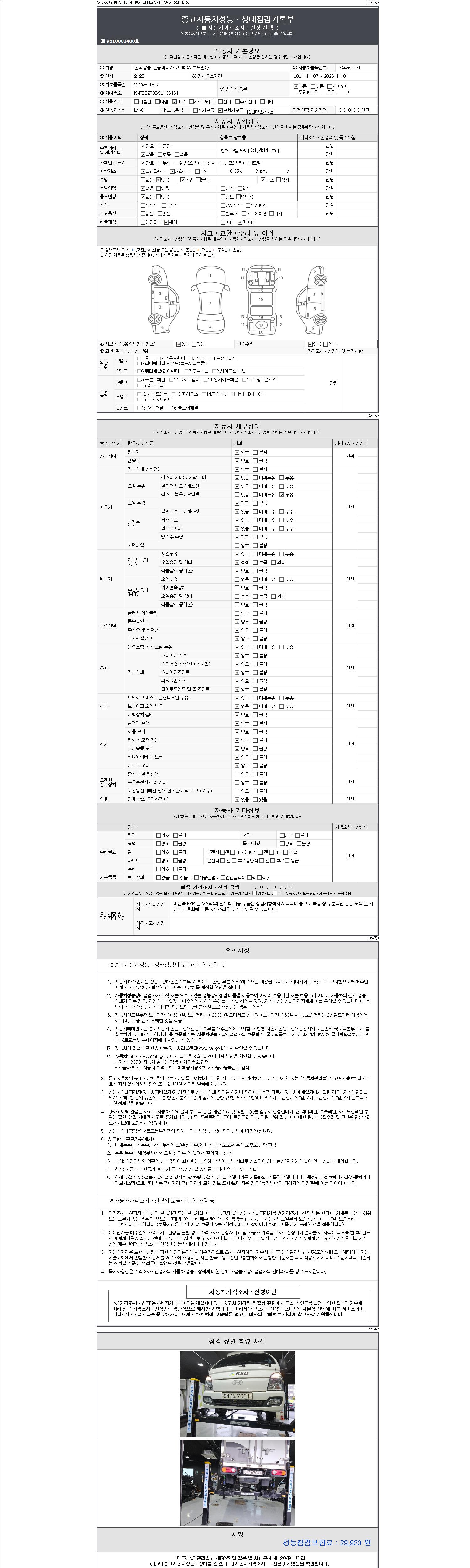 | 주행거리 | 31,469 km | 차량번호 | 844노7051 | 사고유무 | 성능기록부 참조 | 제시번호 | 제 2147483647 호 |
