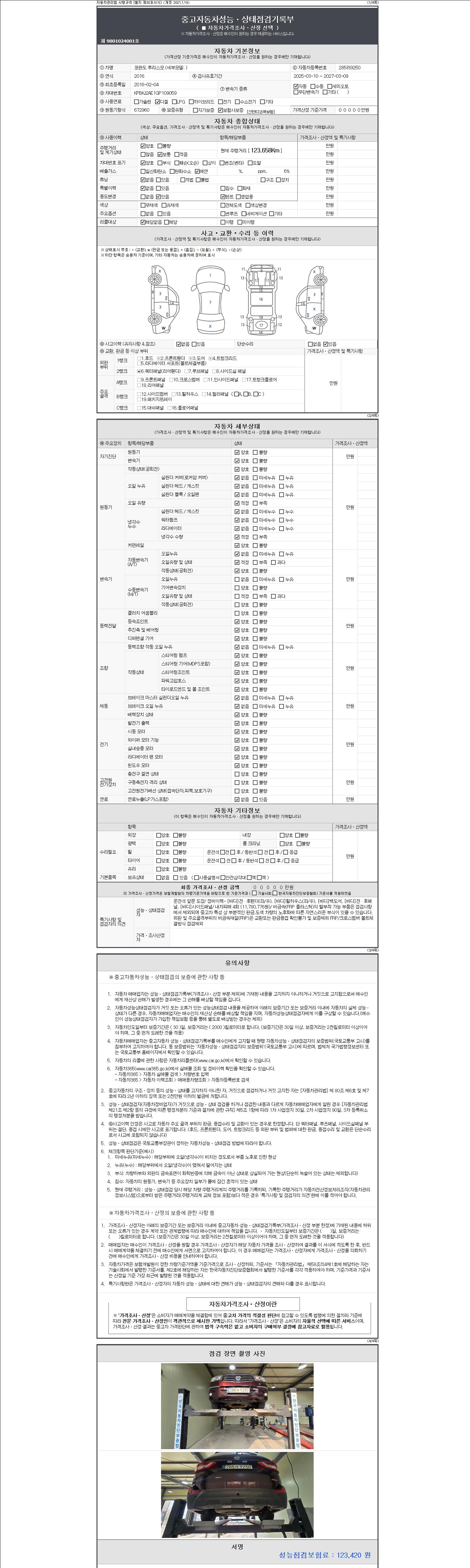 - 2. 차량 등록증이나 성능점검지 등을 상담자에게 요청및 확인하시고 사전에 미리 점검 하시기를 권유드립니다.