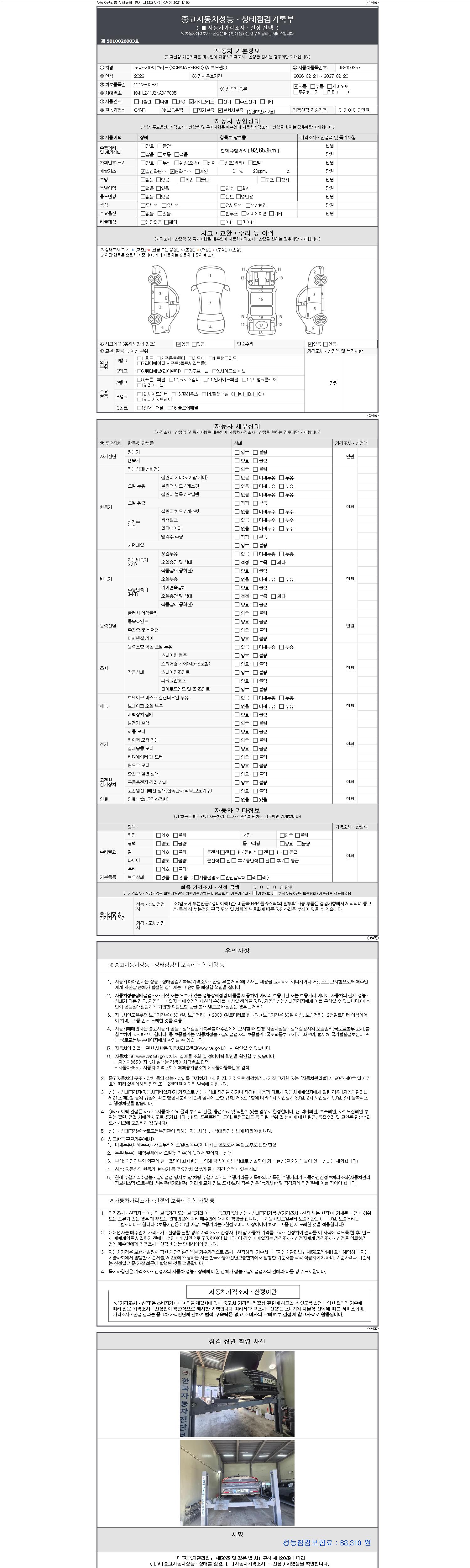 - 2. 차량 등록증이나 성능점검지 등을 상담자에게 요청및 확인하시고 사전에 미리 점검 하시기를 권유드립니다.
