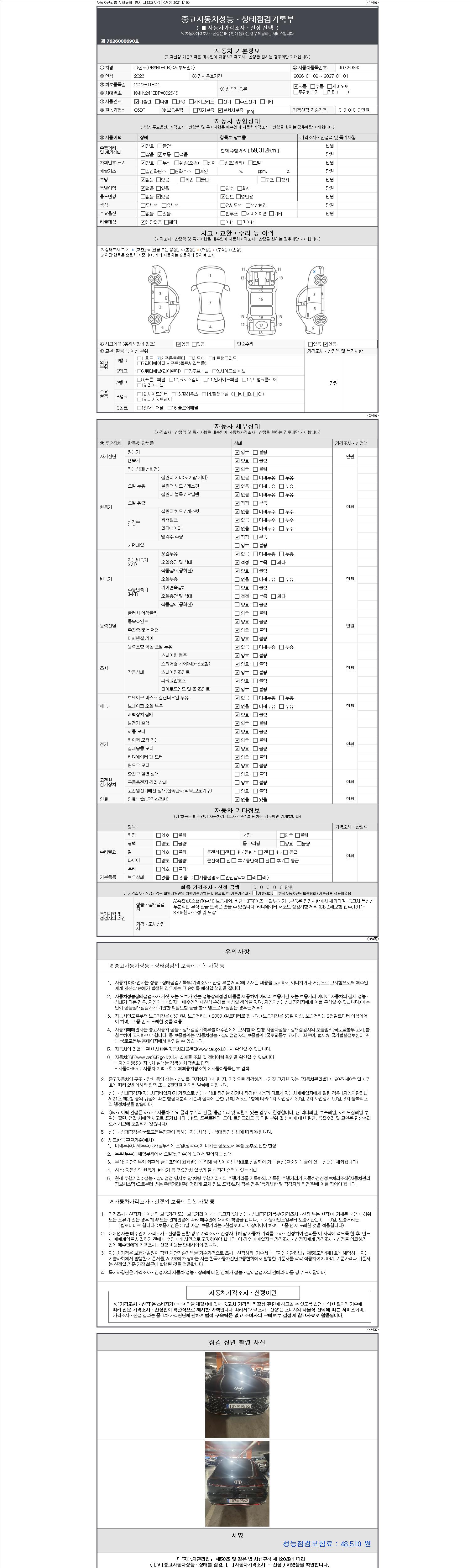 - 2. 차량 등록증이나 성능점검지 등을 상담자에게 요청및 확인하시고 사전에 미리 점검 하시기를 권유드립니다.