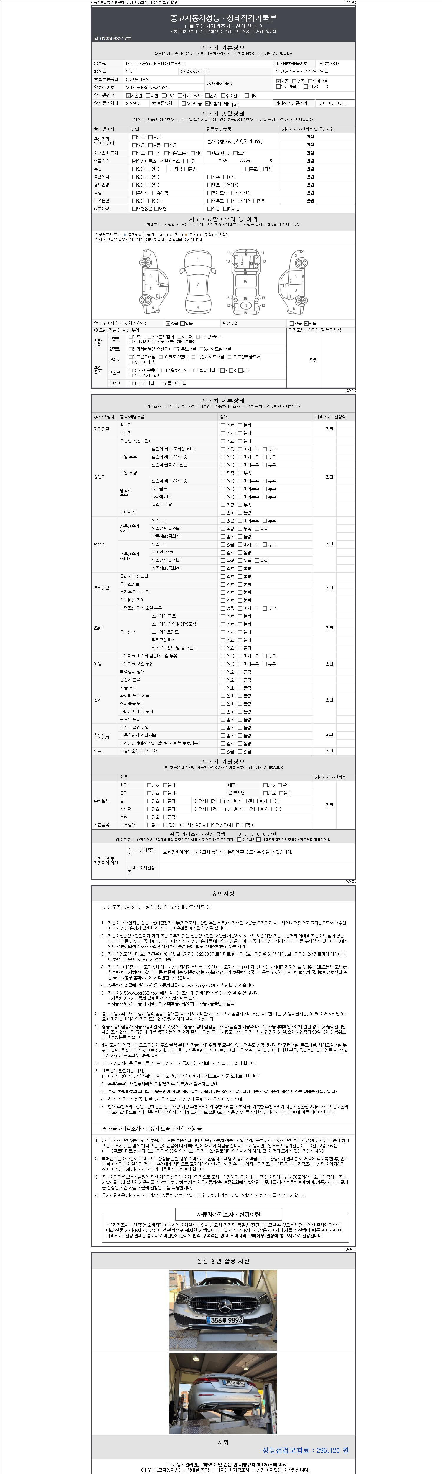 - 사고유무 : 성능기록부 참조