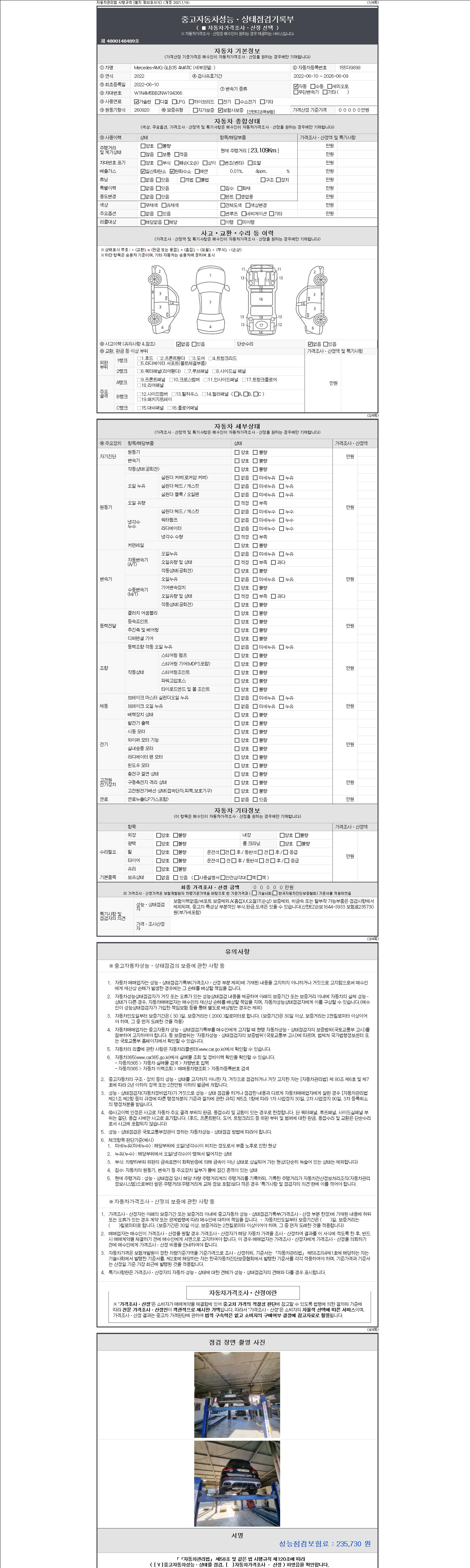 - 사고유무 : 성능기록부 참조