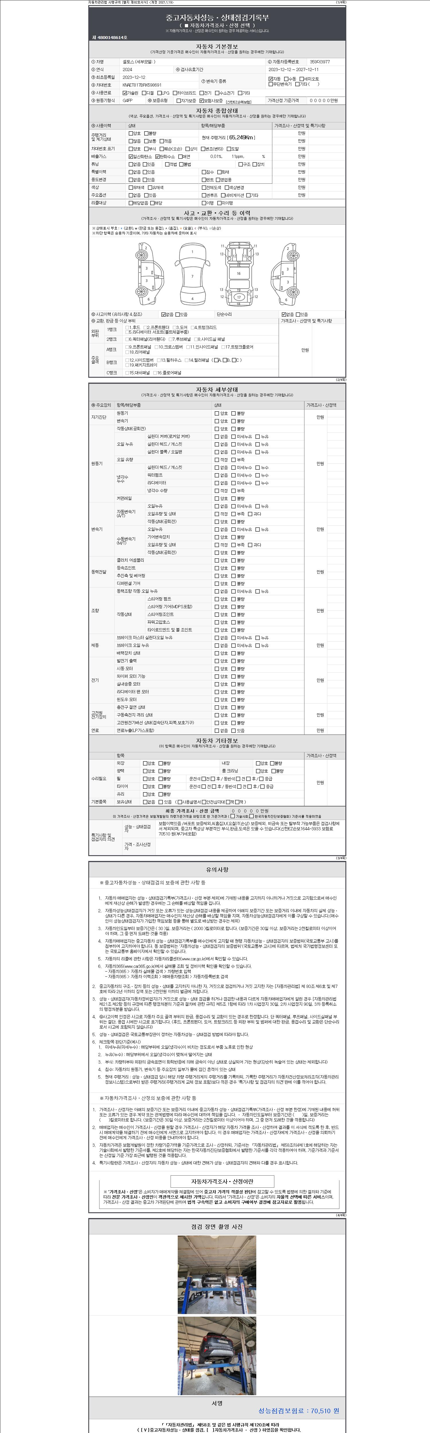 - 2. 차량 등록증이나 성능점검지 등을 상담자에게 요청및 확인하시고 사전에 미리 점검 하시기를 권유드립니다.
