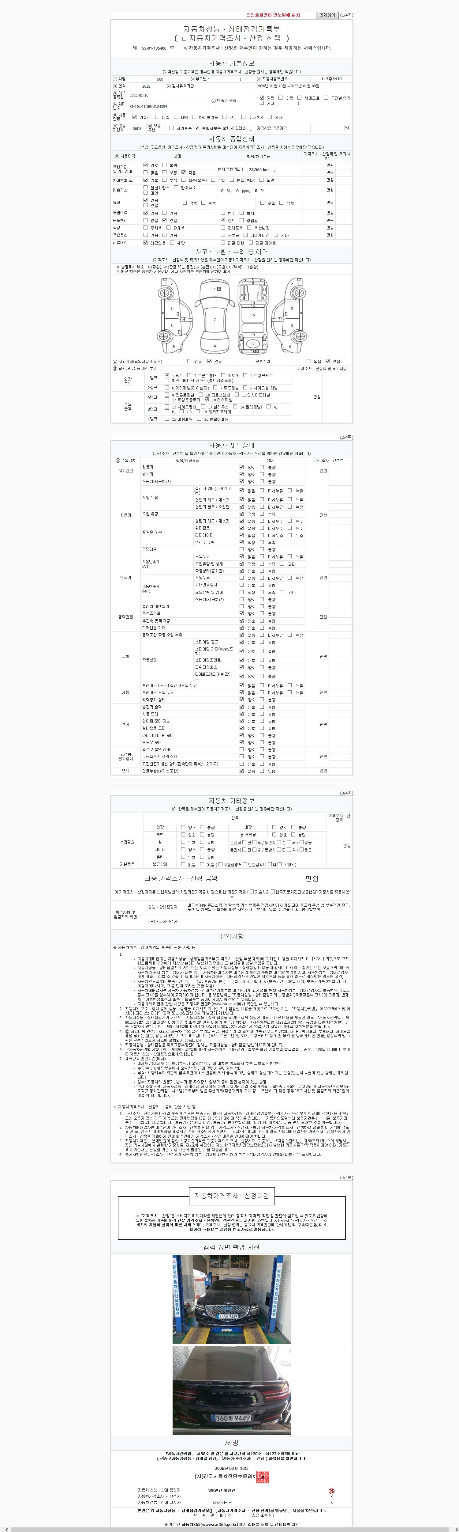 -중고자동차 매매업자를 통해 차량을 구입하실 경우 반드시 "중고자동차 성능, 상태점검 기록부"를 교뷰 받으셔야 하며, 매매업자는 반드시 의무 교부 하여야 압니다.