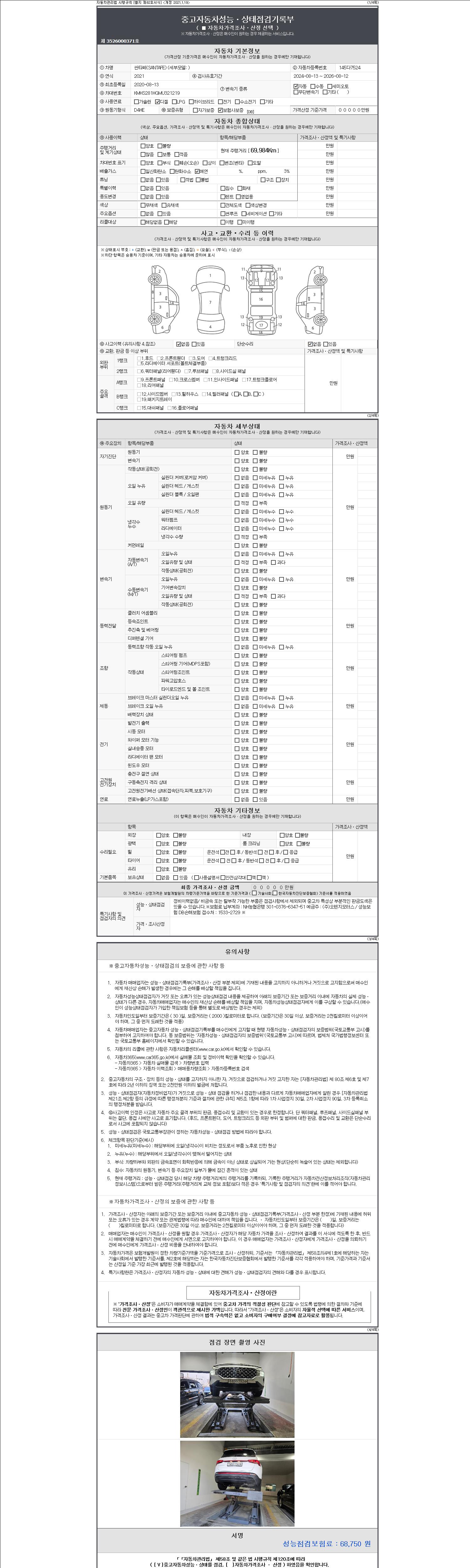 - 2. 차량 등록증이나 성능점검지 등을 상담자에게 요청및 확인하시고 사전에 미리 점검 하시기를 권유드립니다.