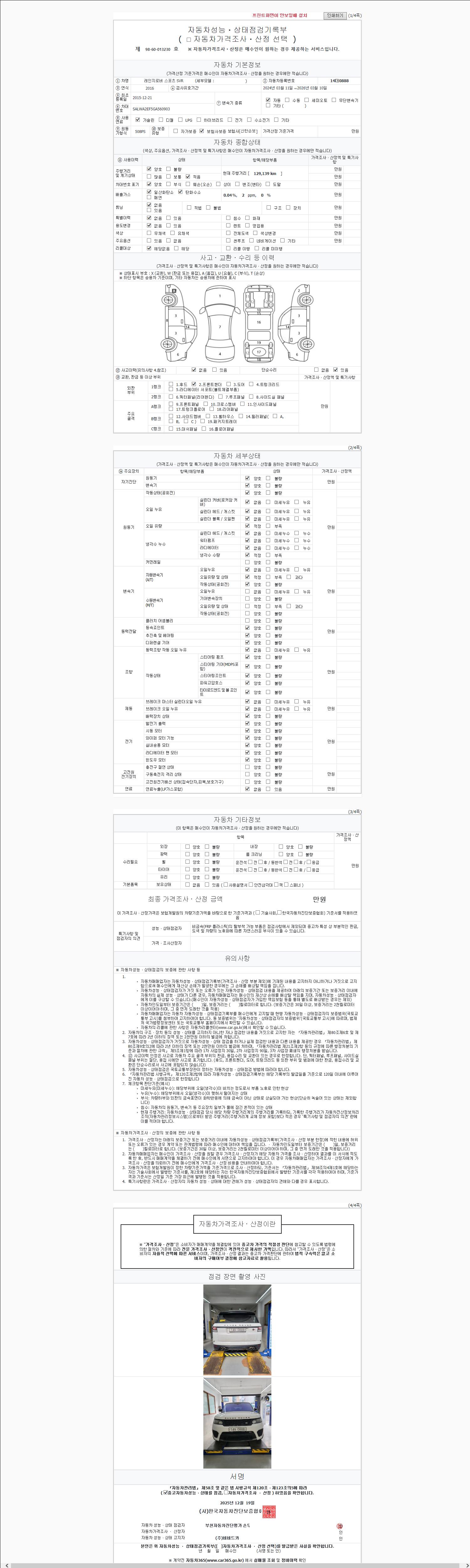 -중고자동차 매매업자를 통해 차량을 구입하실 경우 반드시 "중고자동차 성능, 상태점검 기록부"를 교뷰 받으셔야 하며, 매매업자는 반드시 의무 교부 하여야 압니다.
