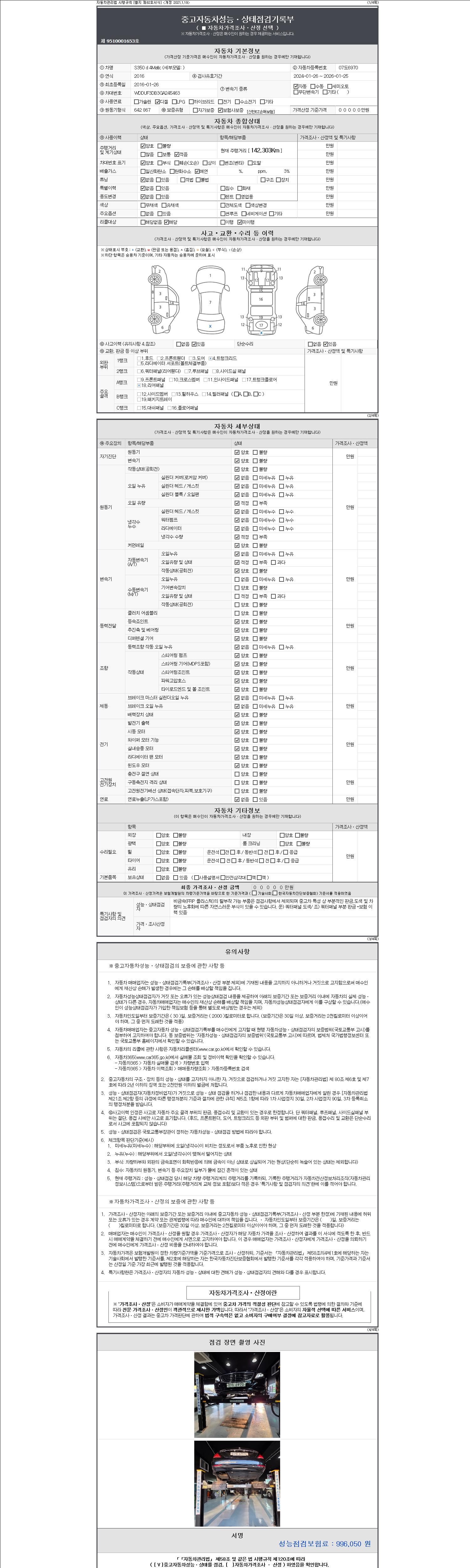 -중고자동차 매매업자를 통해 차량을 구입하실 경우 반드시 "중고자동차 성능, 상태점검 기록부"를 교뷰 받으셔야 하며, 매매업자는 반드시 의무 교부 하여야 압니다.