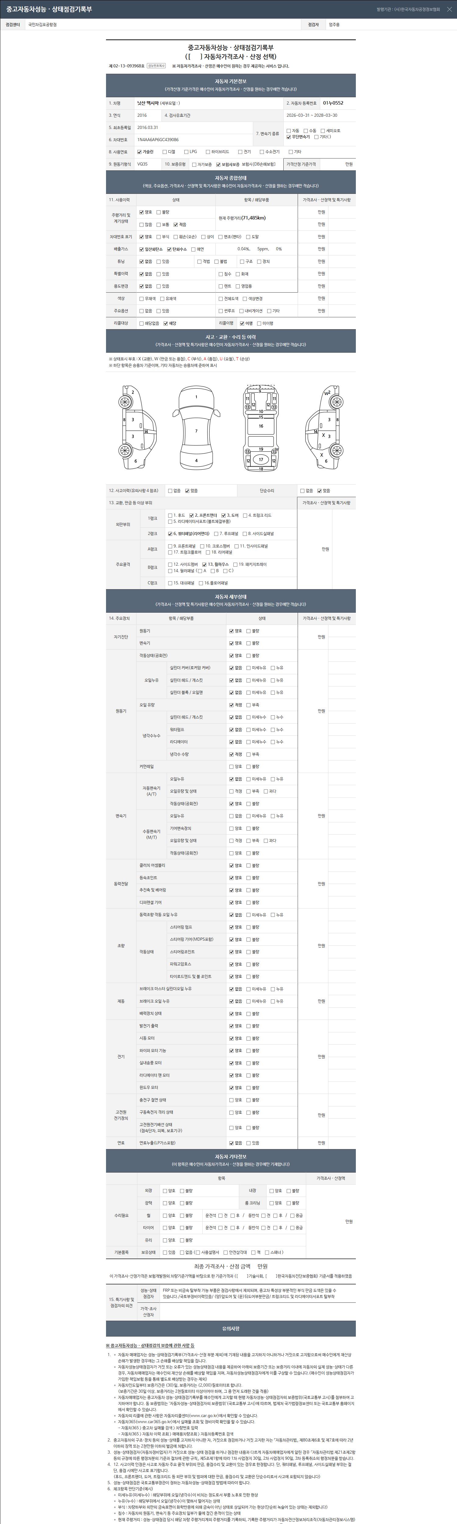 - 2. 차량 등록증이나 성능점검지 등을 상담자에게 요청및 확인하시고 사전에 미리 점검 하시기를 권유드립니다.