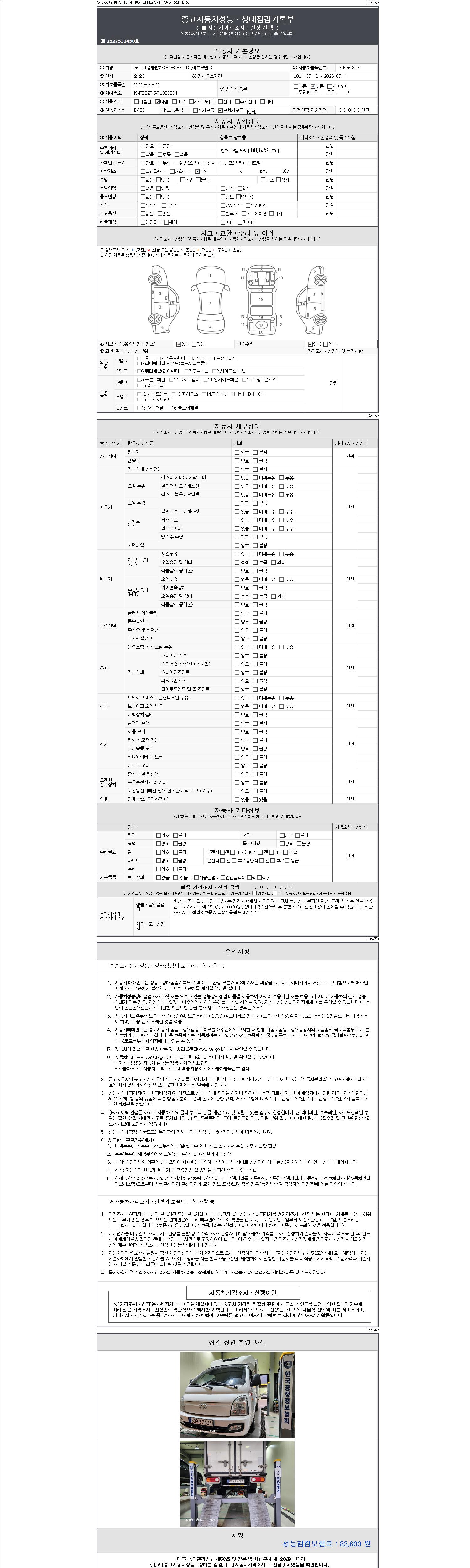 | 주행거리 | 98,528 km | 차량번호 | 809모3605 | 사고유무 | 성능기록부 참조 | 제시번호 | 제 2147483647 호 |