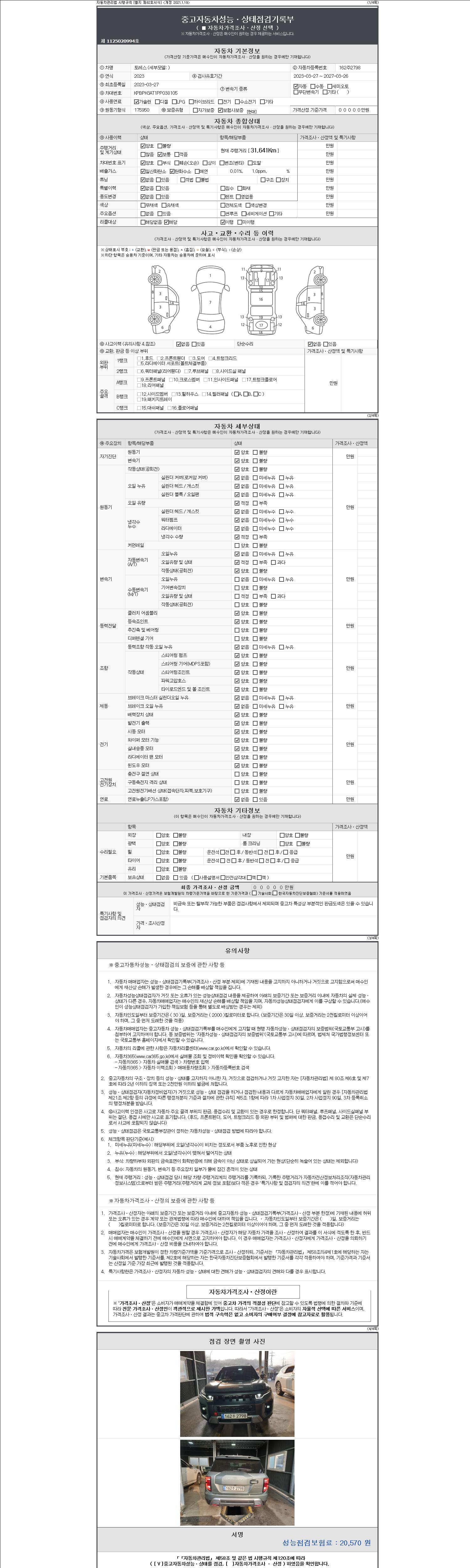 | 주행거리 | 31,641 km | 차량번호 | 162주2798 | 사고유무 | 성능기록부 참조 | 제시번호 | 제 2147483647 호 |
