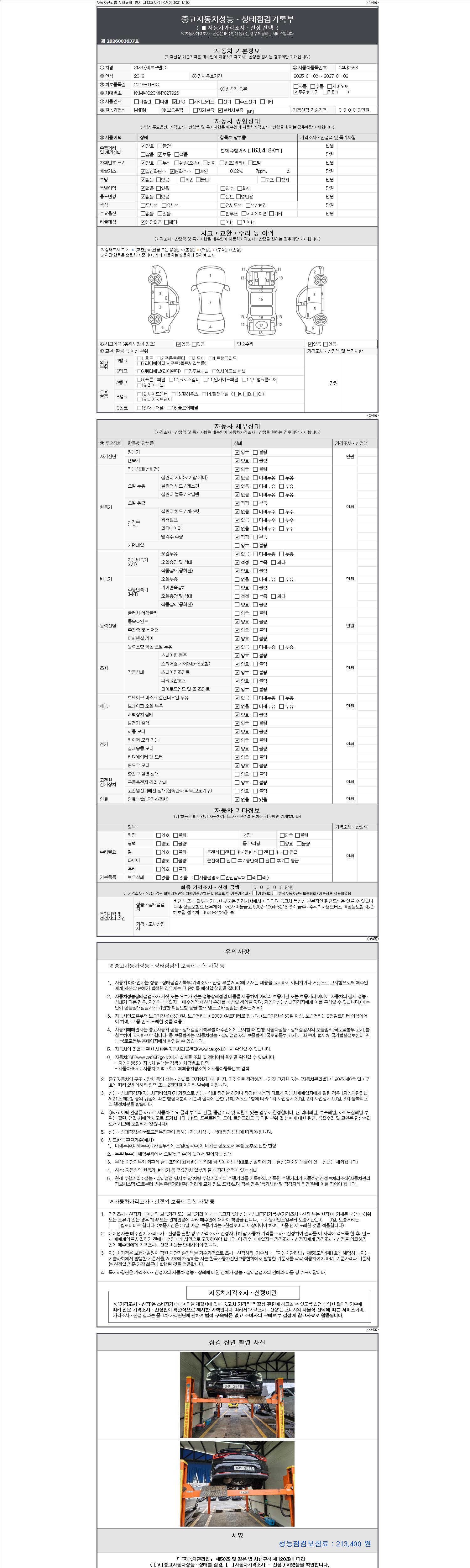 - 2. 차량 등록증이나 성능점검지 등을 상담자에게 요청및 확인하시고 사전에 미리 점검 하시기를 권유드립니다.