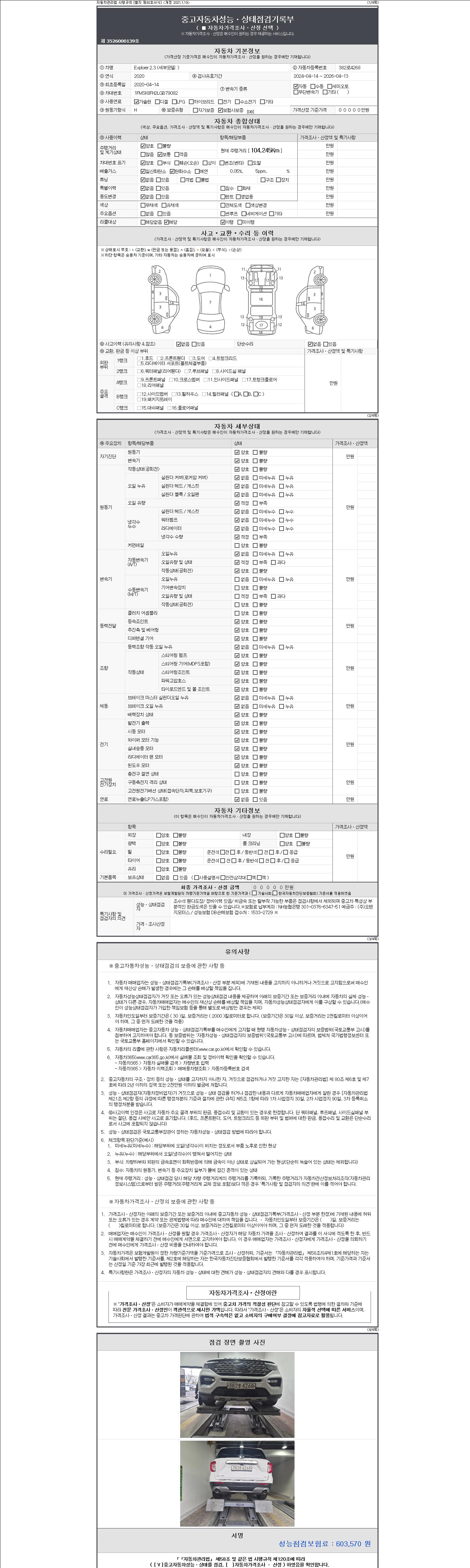 | 주행거리 | 104,233 km | 차량번호 | 382로4268 | 사고유무 | 성능기록부 참조 | 제시번호 | 제 2147483647 호 |