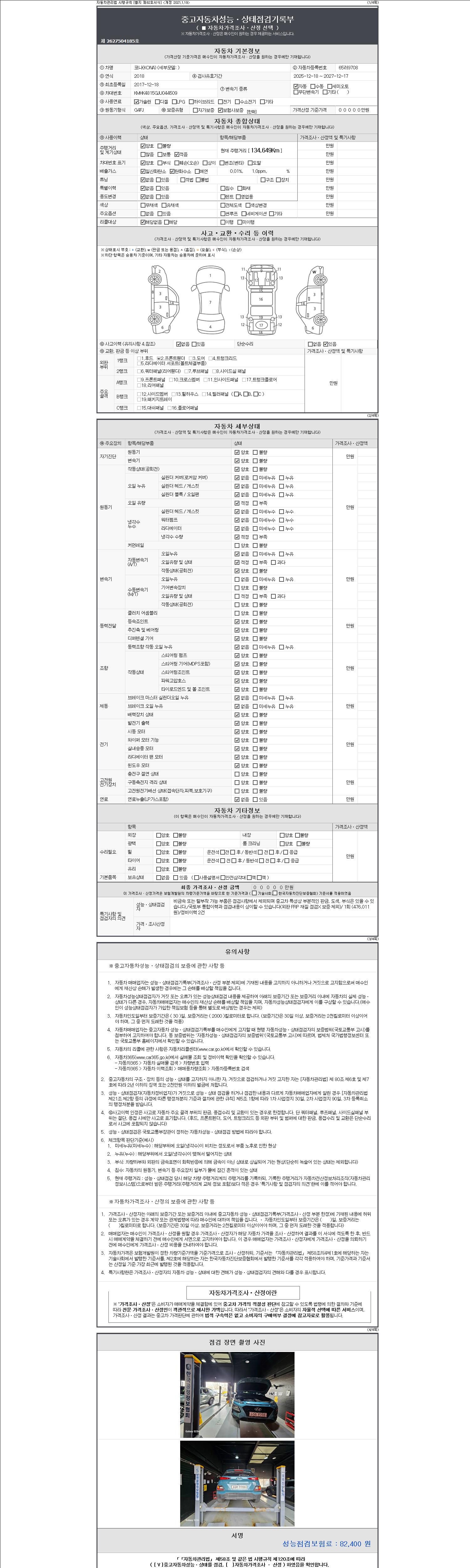 | 주행거리 | 134,649 km | 차량번호 | 65러9708 | 사고유무 | 성능기록부 참조 | 제시번호 | 제 2147483647 호 |