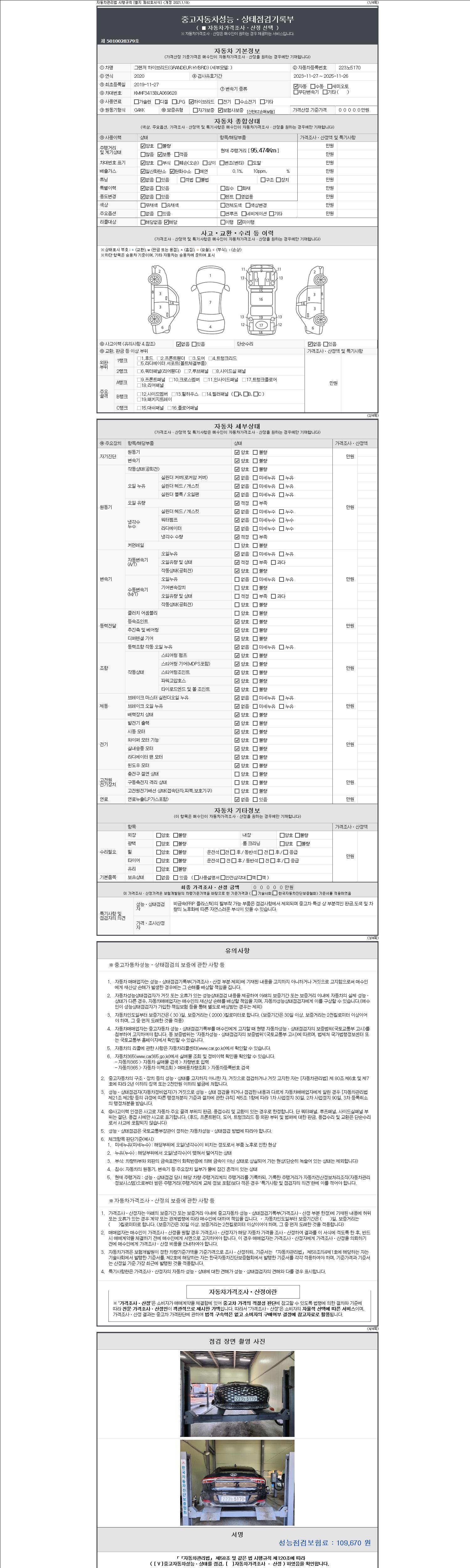 | 주행거리 | 95,474 km | 차량번호 | 223노5170 | 사고유무 | 성능기록부 참조 | 제시번호 | 제 2147483647 호 |