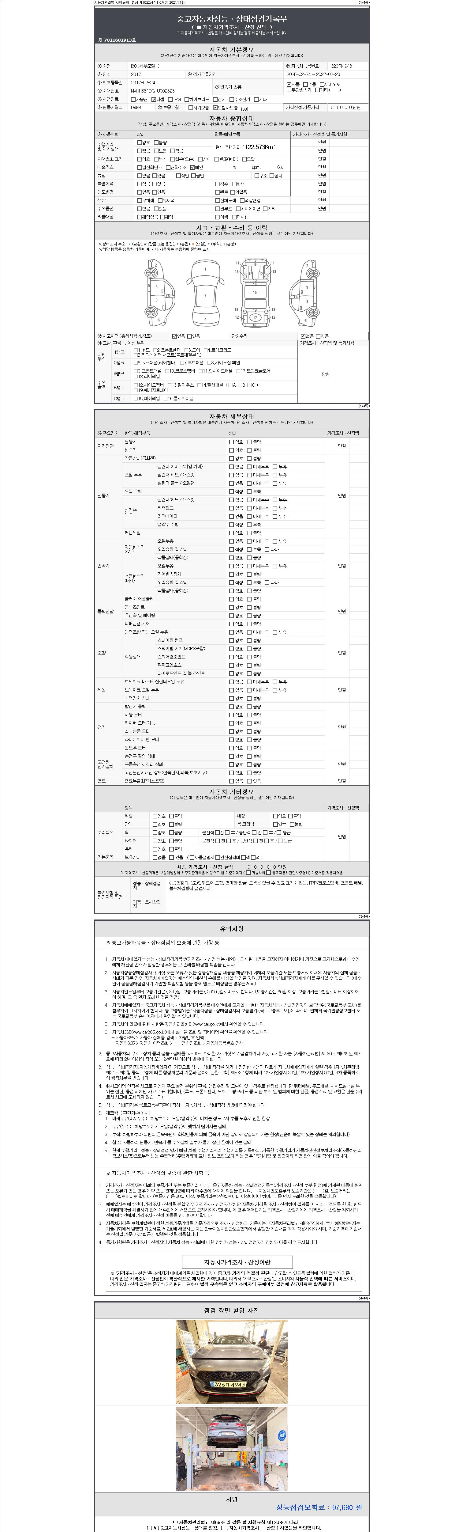 - 2. 차량 등록증이나 성능점검지 등을 상담자에게 요청및 확인하시고 사전에 미리 점검 하시기를 권유드립니다.