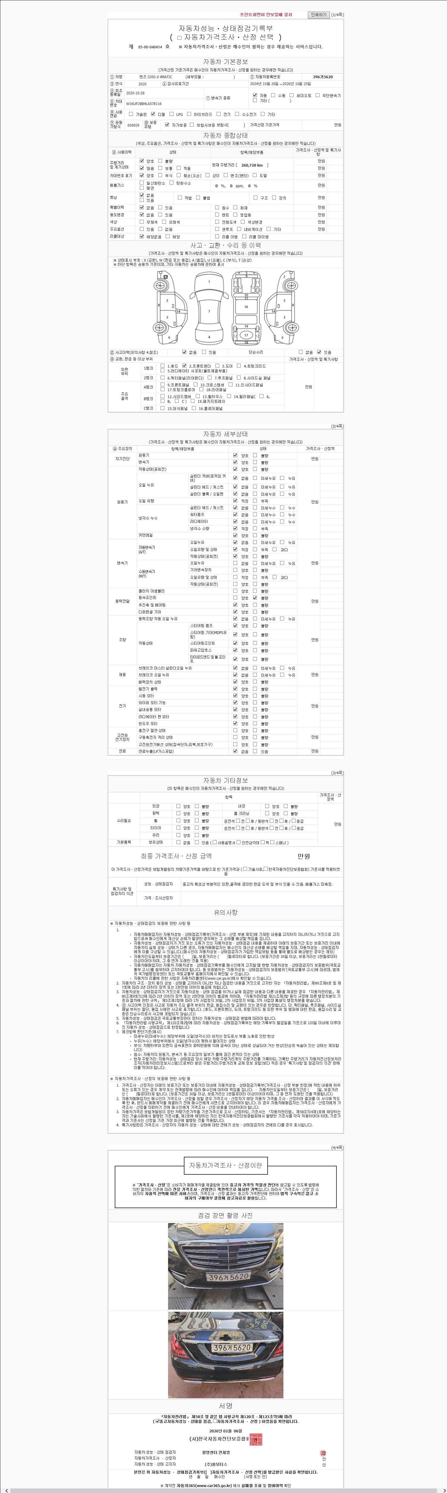 | 주행거리 | 260,030 km | 차량번호 | 396거5620 | 사고유무 | 성능기록부 참조 | 제시번호 | 제 2147483647 호 |