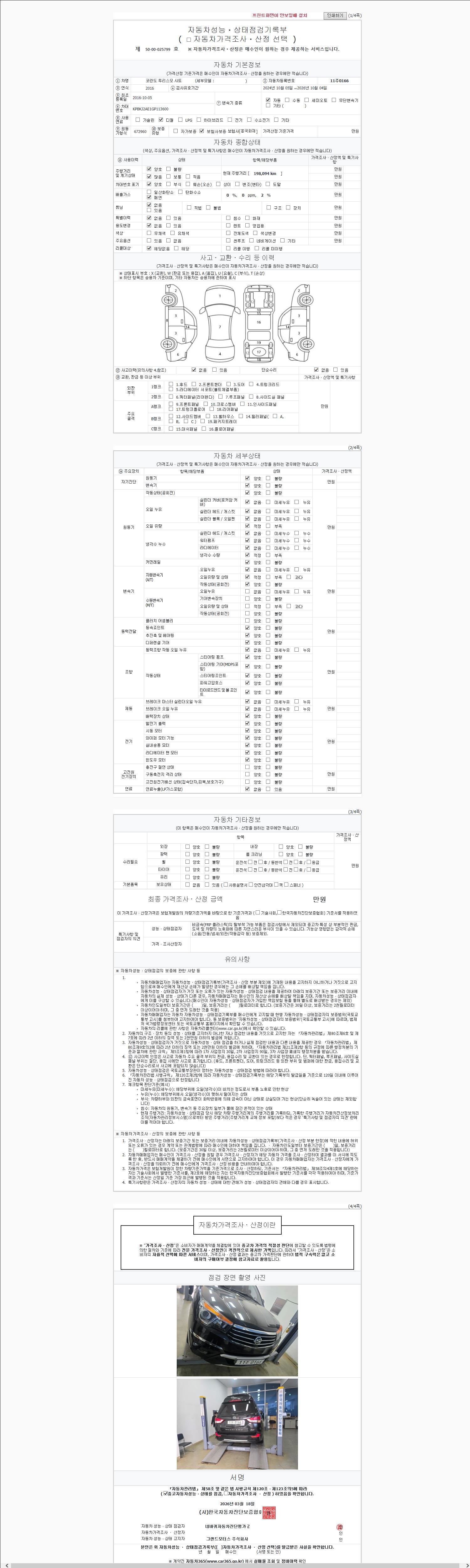 - 2. 차량 등록증이나 성능점검지 등을 상담자에게 요청및 확인하시고 사전에 미리 점검 하시기를 권유드립니다.