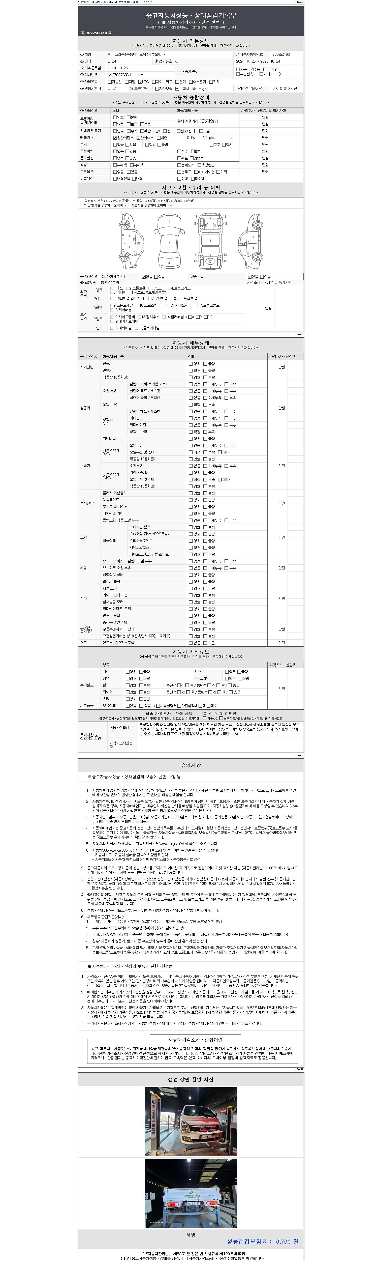 | 주행거리 | 898 km | 차량번호 | 800소2193 | 사고유무 | 성능기록부 참조 | 제시번호 | 제 2147483647 호 |