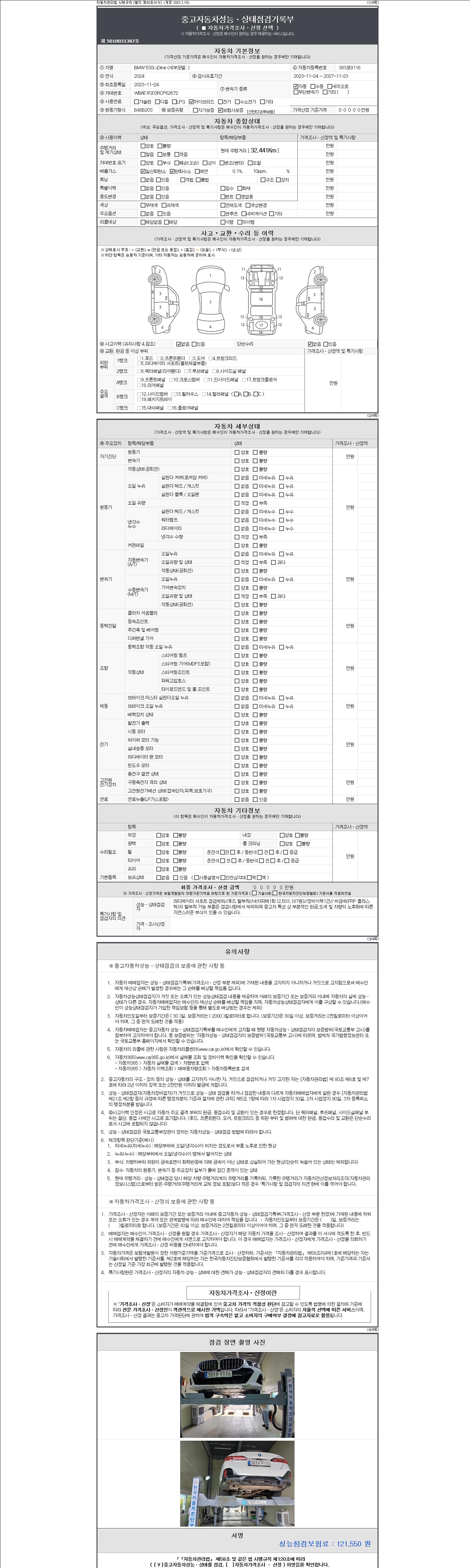 | 주행거리 | 32,441 km | 차량번호 | 383로9116 | 사고유무 | 성능기록부 참조 | 제시번호 | 제 2147483647 호 |