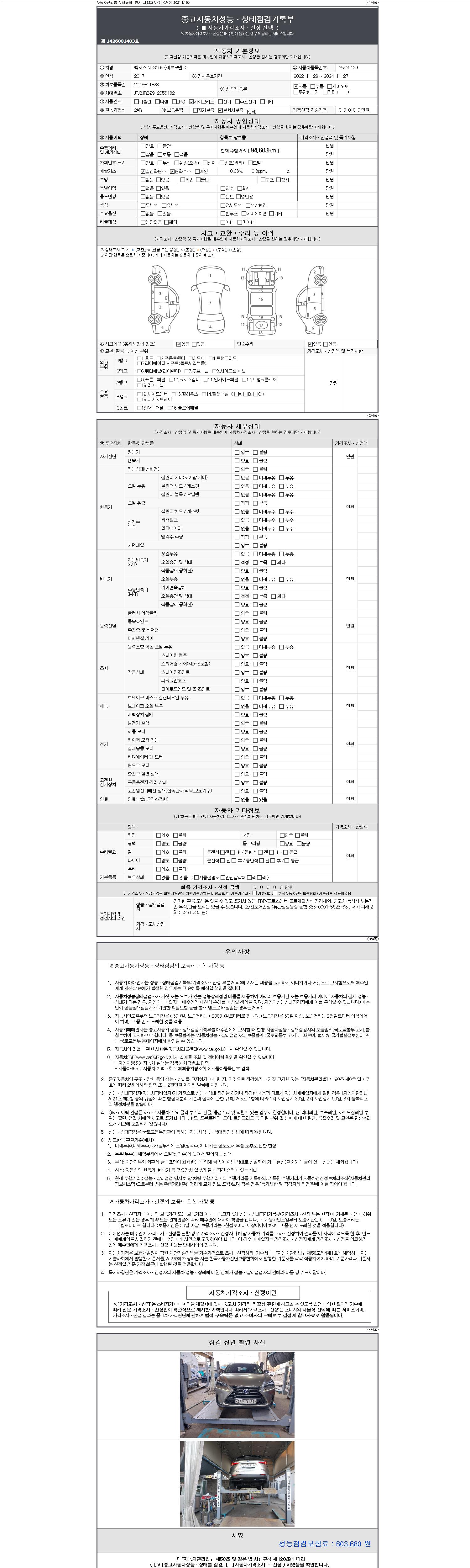 | 주행거리 | 94,603 km | 차량번호 | 35주0139 | 사고유무 | 성능기록부 참조 | 제시번호 | 제 2147483647 호 |