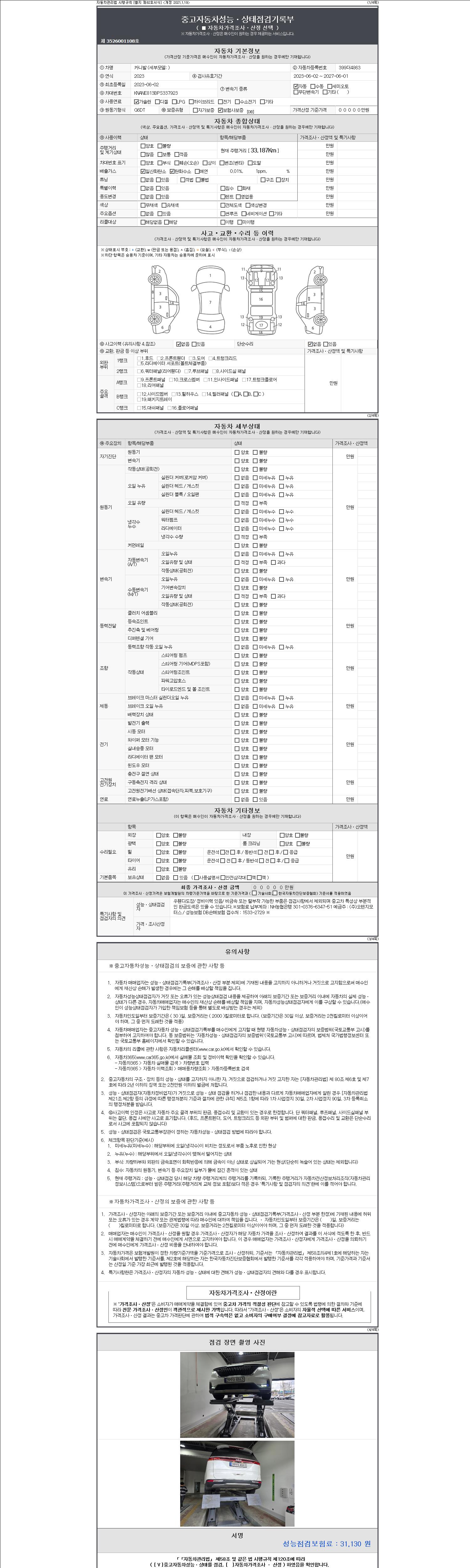 - 2. 차량 등록증이나 성능점검지 등을 상담자에게 요청및 확인하시고 사전에 미리 점검 하시기를 권유드립니다.