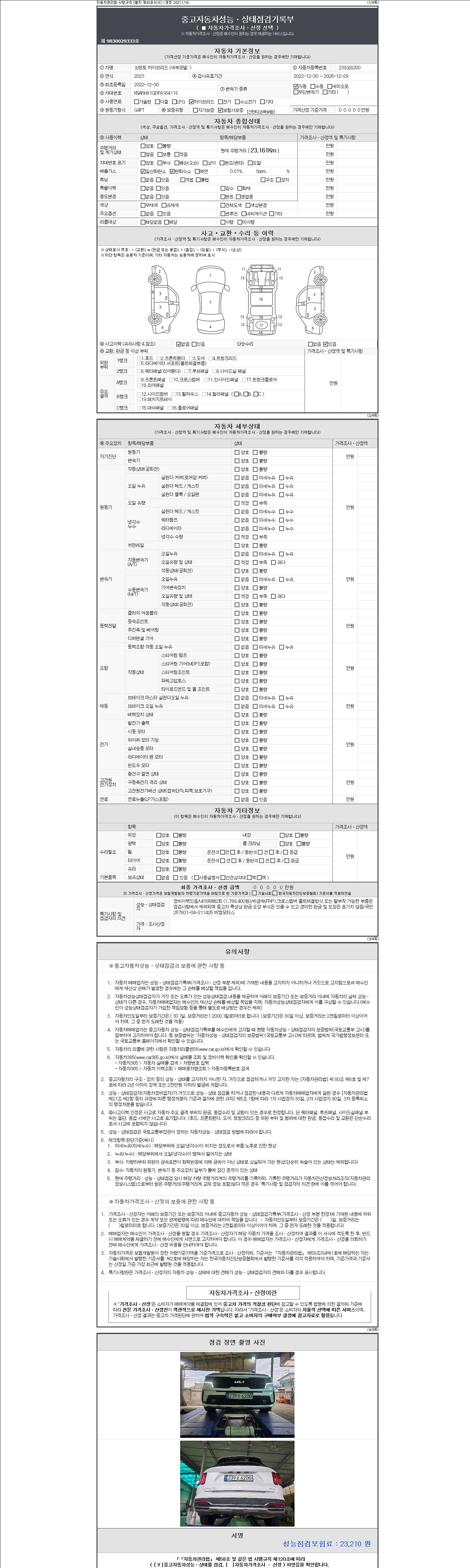 | 주행거리 | 23,161 km | 차량번호 | 239오6200 | 사고유무 | 성능기록부 참조 | 제시번호 | 제 2147483647 호 |