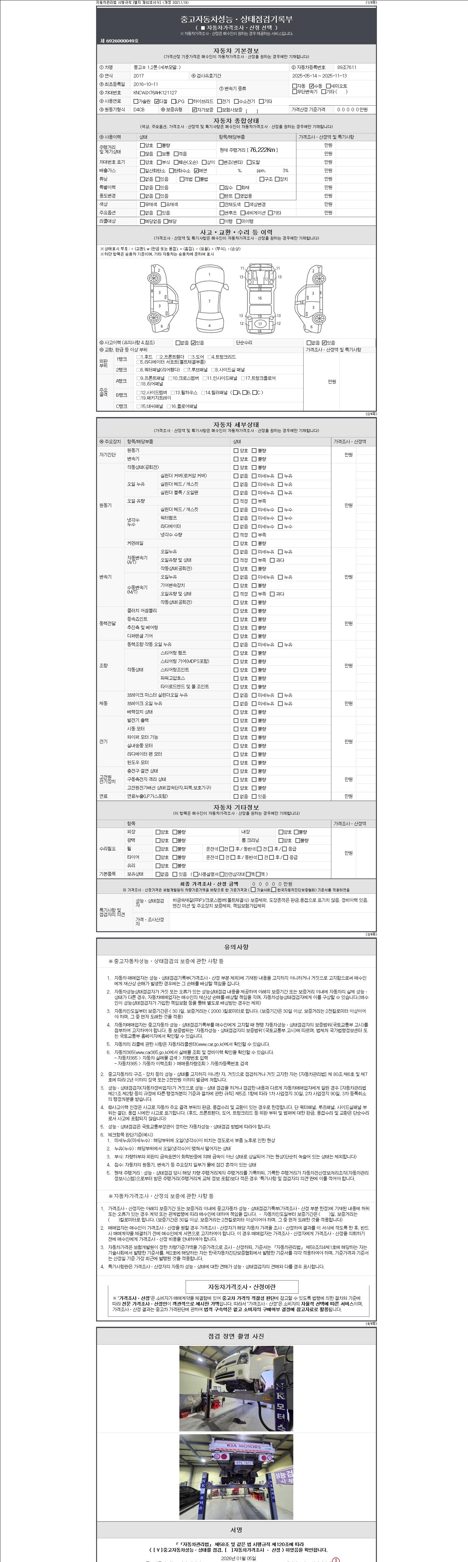 - 2. 차량 등록증이나 성능점검지 등을 상담자에게 요청및 확인하시고 사전에 미리 점검 하시기를 권유드립니다.