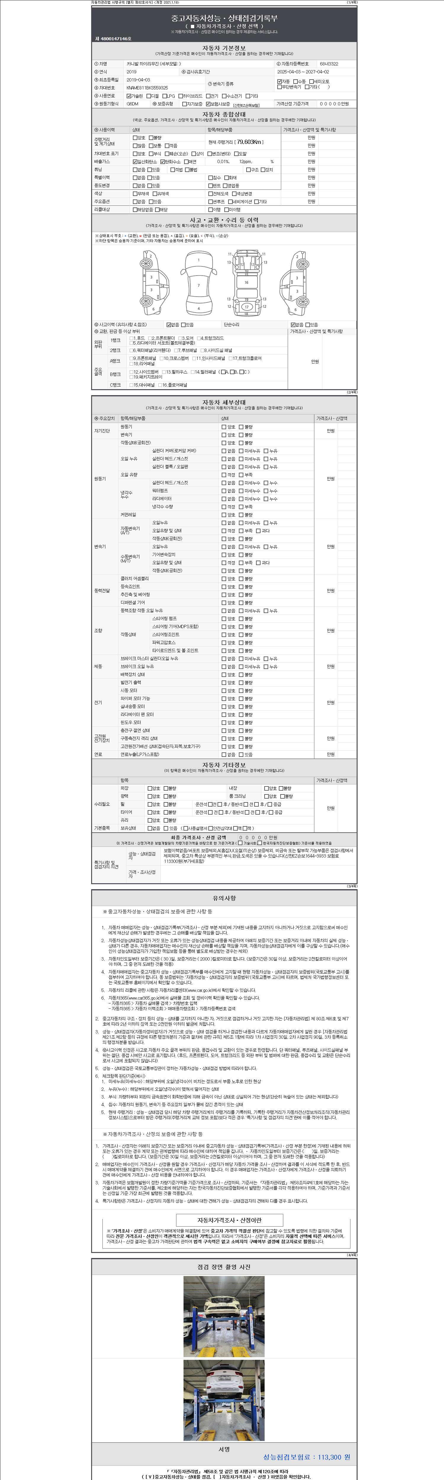 | 주행거리 | 79,603 km | 차량번호 | 68너3322 | 사고유무 | 성능기록부 참조 | 제시번호 | 제 2147483647 호 |