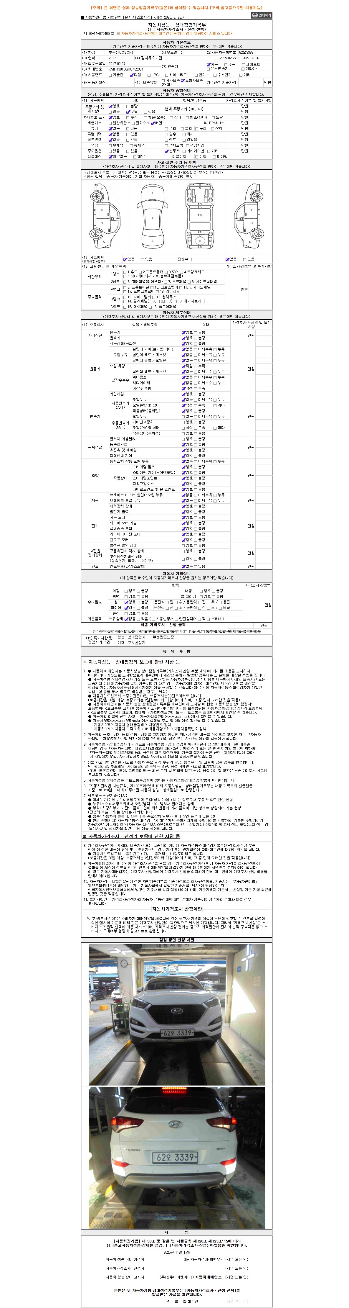 - 2. 차량 등록증이나 성능점검지 등을 상담자에게 요청및 확인하시고 사전에 미리 점검 하시기를 권유드립니다.