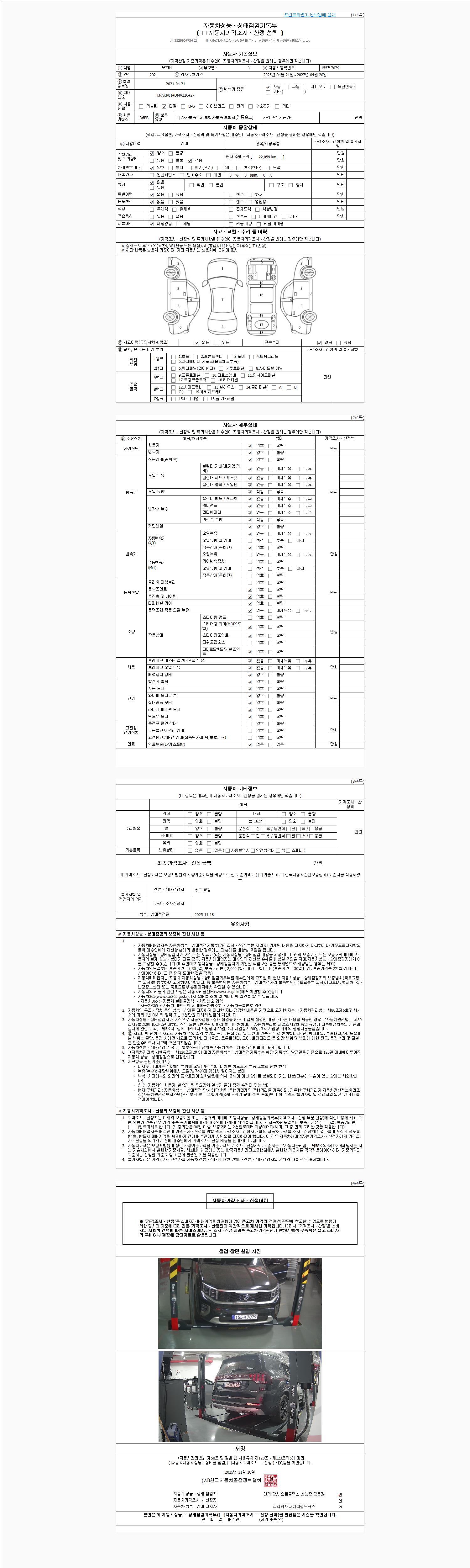 | 주행거리 | 22,064 km | 차량번호 | 155저7079 | 사고유무 | 성능기록부 참조 | 제시번호 | 제 2025156815 호 |