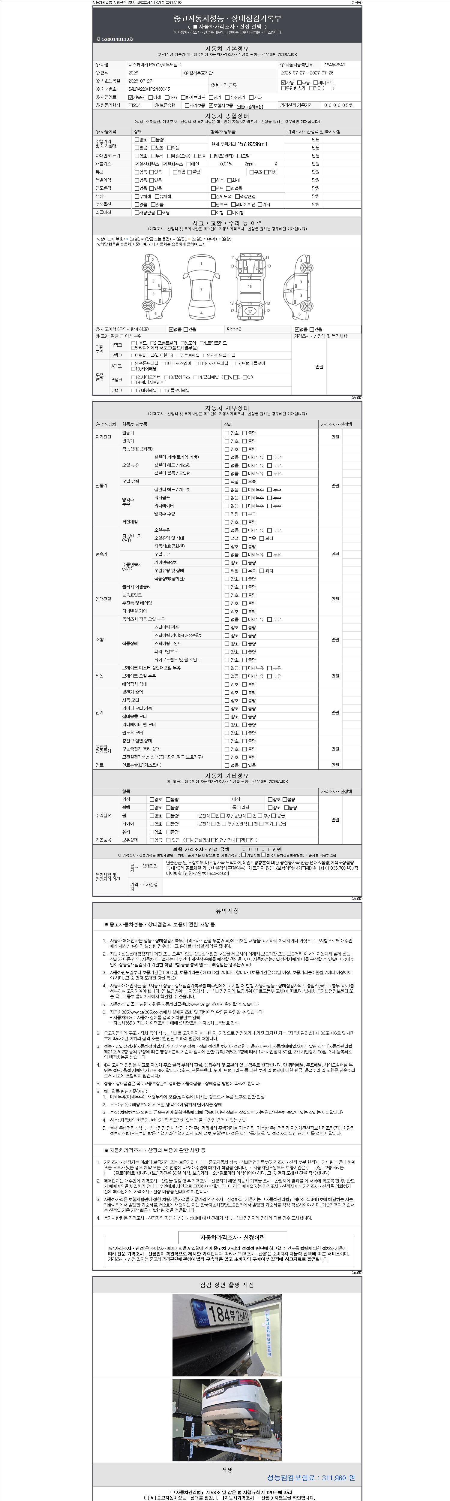 -중고자동차 매매업자를 통해 차량을 구입하실 경우 반드시 "중고자동차 성능, 상태점검 기록부"를 교뷰 받으셔야 하며, 매매업자는 반드시 의무 교부 하여야 압니다.