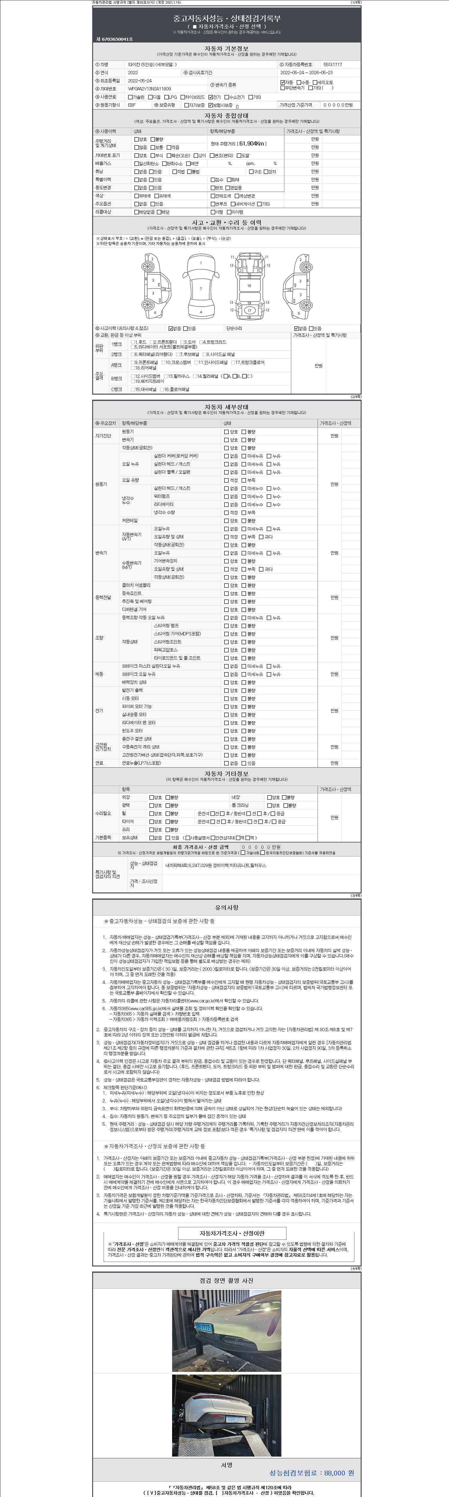 - 2. 차량 등록증이나 성능점검지 등을 상담자에게 요청및 확인하시고 사전에 미리 점검 하시기를 권유드립니다.