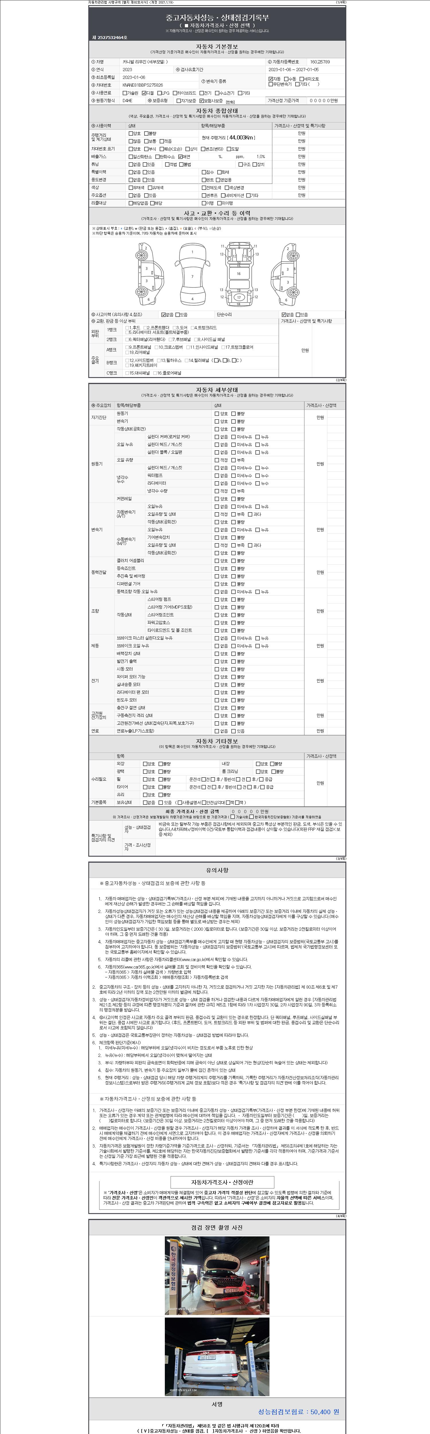 | 주행거리 | 44,003 km | 차량번호 | 160고5789 | 사고유무 | 성능기록부 참조 | 제시번호 | 제 2147483647 호 |