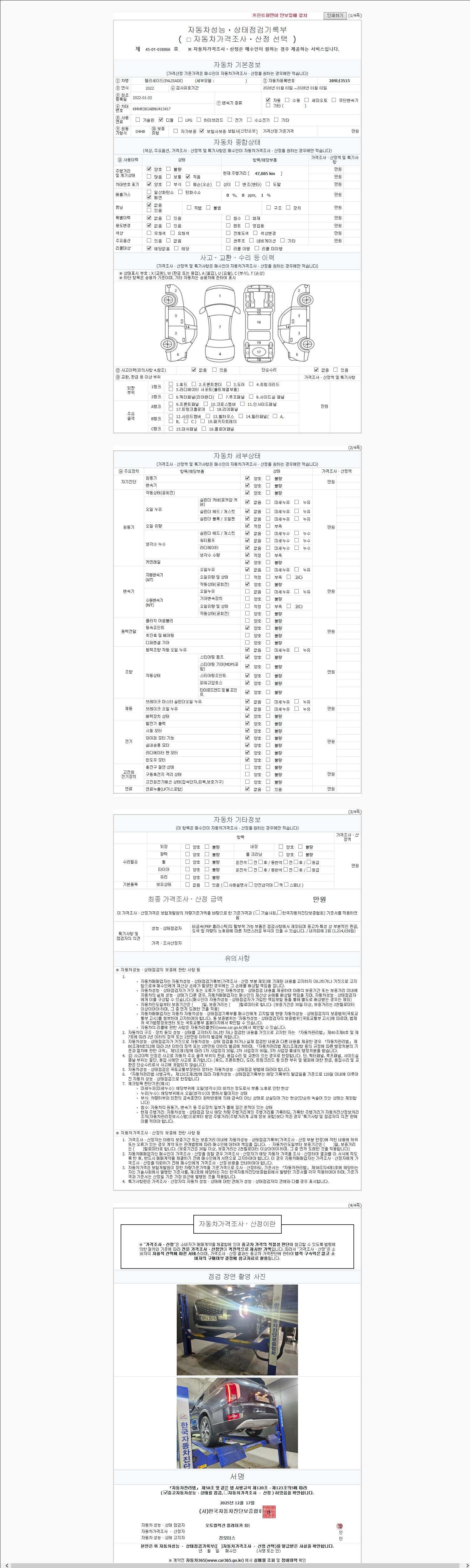 - 2. 차량 등록증이나 성능점검지 등을 상담자에게 요청및 확인하시고 사전에 미리 점검 하시기를 권유드립니다.
