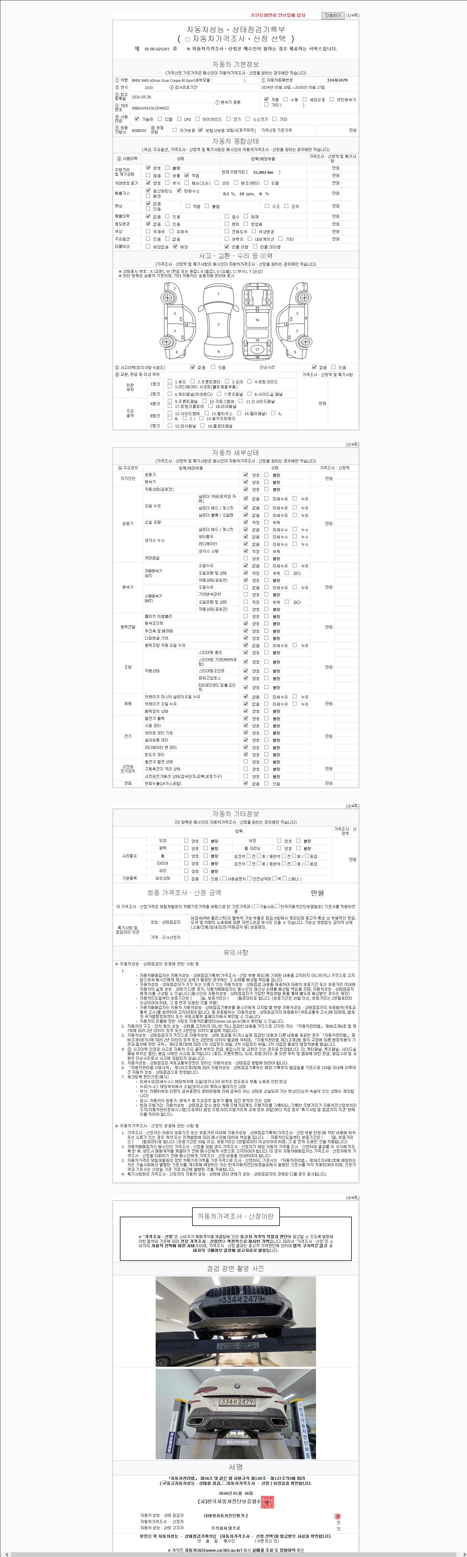 | 주행거리 | 51,802 km | 차량번호 | 334서2479 | 사고유무 | 성능기록부 참조 | 제시번호 | 제 2147483647 호 |