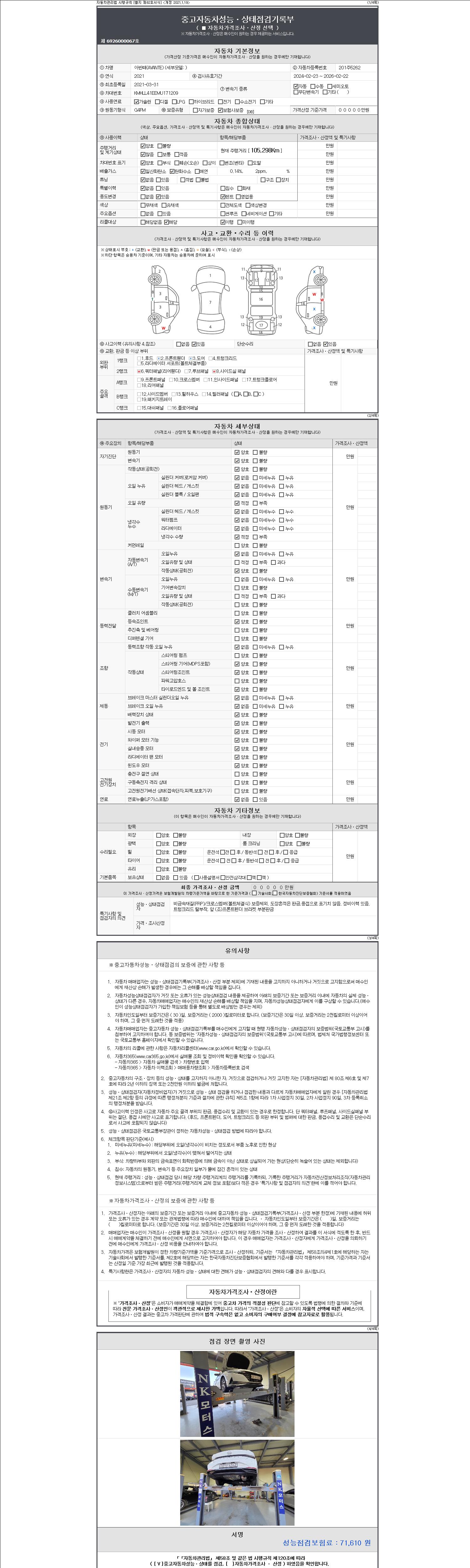 - 2. 차량 등록증이나 성능점검지 등을 상담자에게 요청및 확인하시고 사전에 미리 점검 하시기를 권유드립니다.