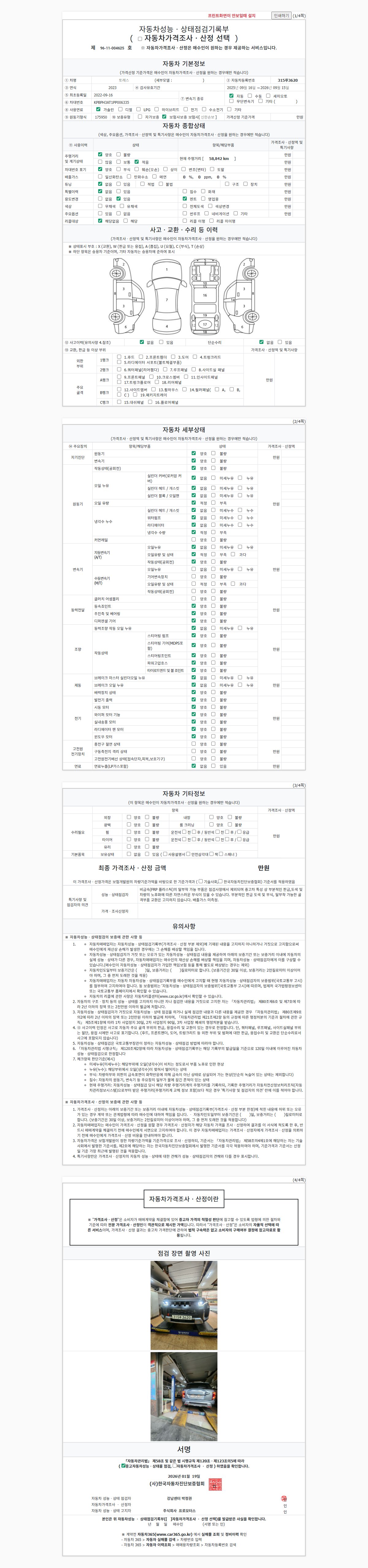 • 2. 차량 등록증이나 성능점검지 등을 상담자에게 요청및 확인하시고 사전에 미리 점검 하시기를 권유드립니다.
