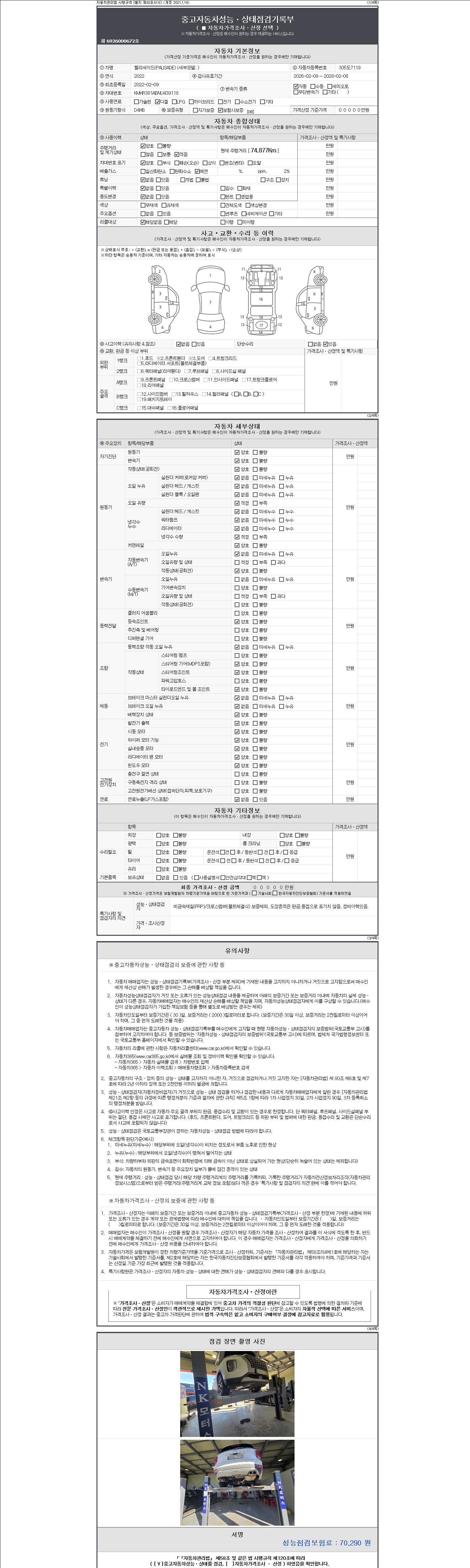 - 2. 차량 등록증이나 성능점검지 등을 상담자에게 요청및 확인하시고 사전에 미리 점검 하시기를 권유드립니다.