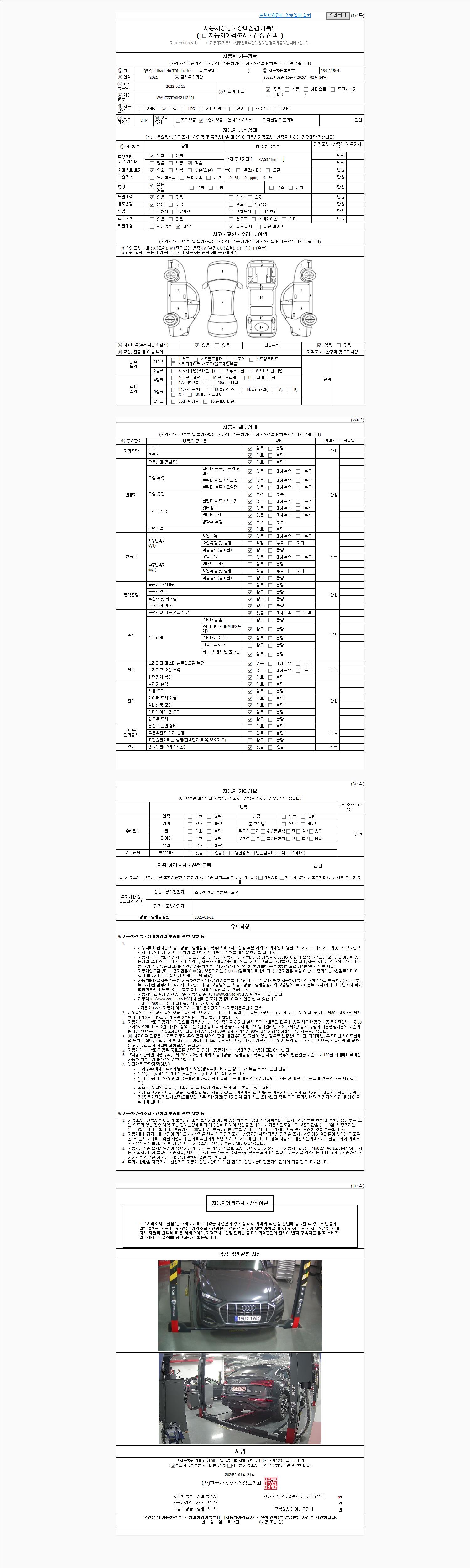 - 2. 차량 등록증이나 성능점검지 등을 상담자에게 요청및 확인하시고 사전에 미리 점검 하시기를 권유드립니다.