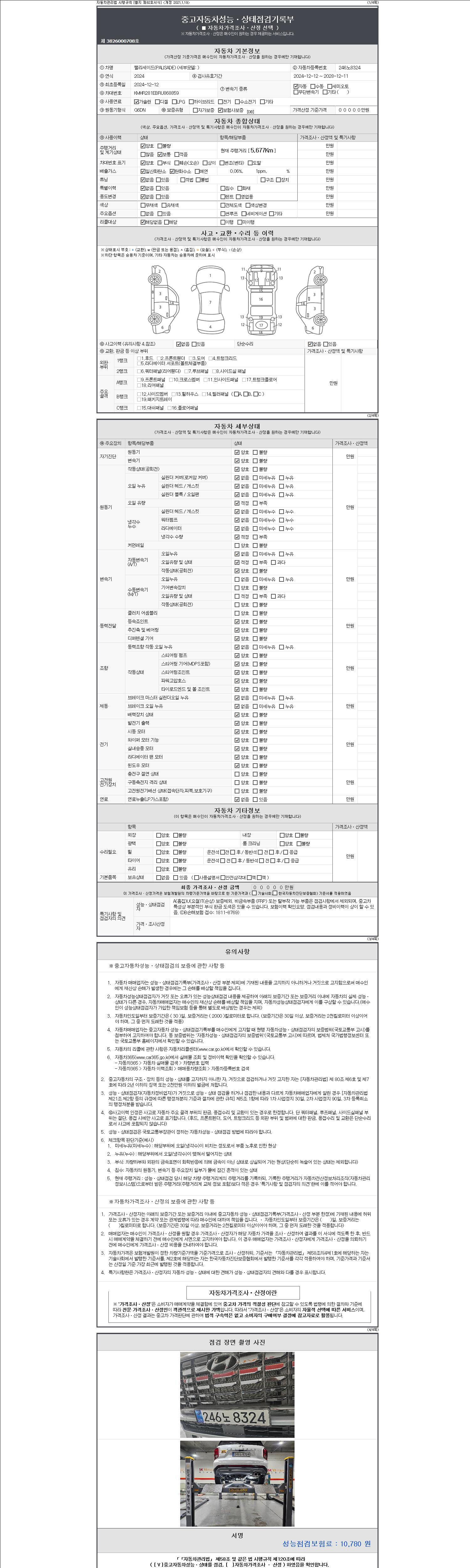 | 주행거리 | 5,677 km | 차량번호 | 246노8324 | 사고유무 | 성능기록부 참조 | 제시번호 | 제 2147483647 호 |
