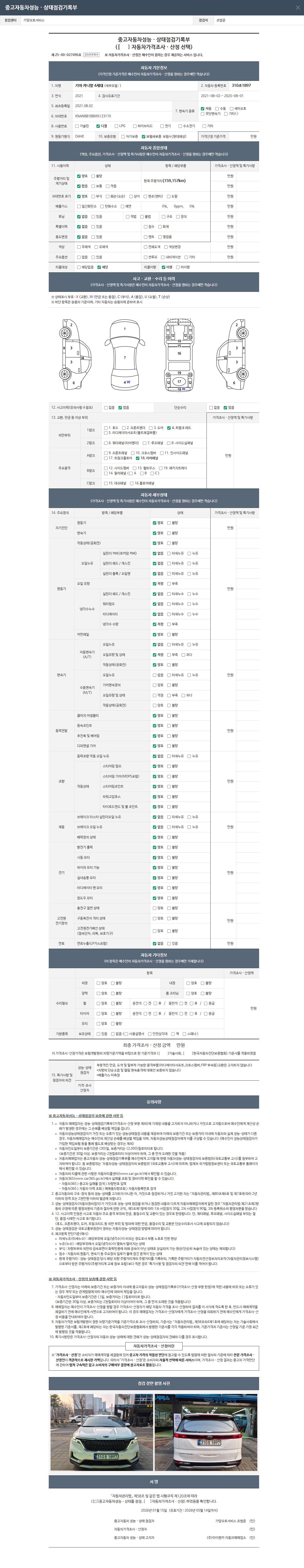 - 2. 차량 등록증이나 성능점검지 등을 상담자에게 요청및 확인하시고 사전에 미리 점검 하시기를 권유드립니다.